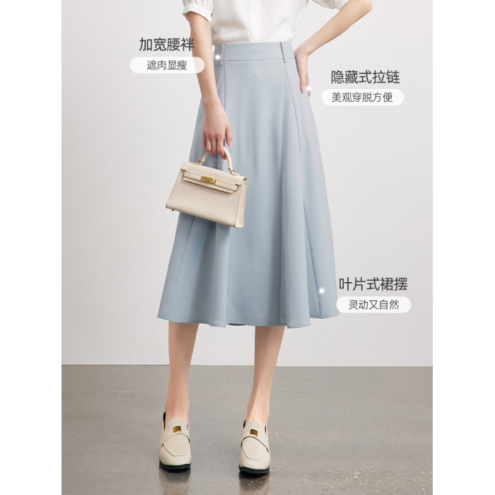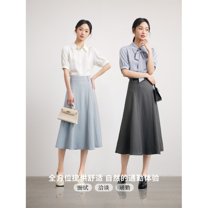 movk藍色面試半身裙薄款半裙西裝夏季a字長款顯瘦遮胯長裙套裝女