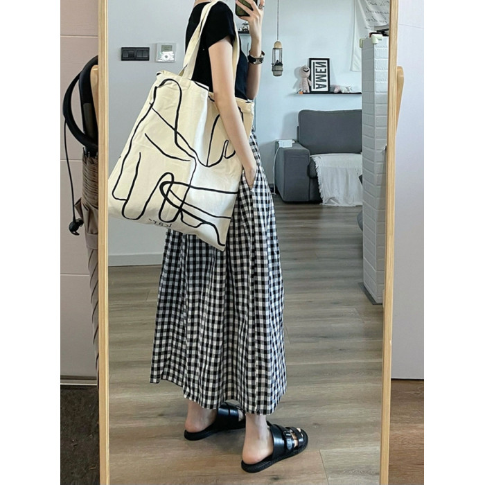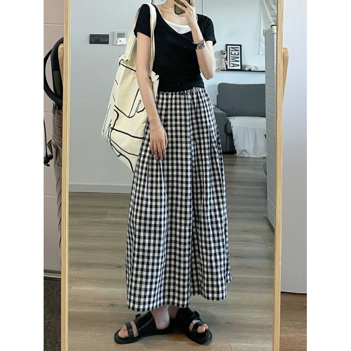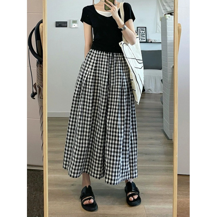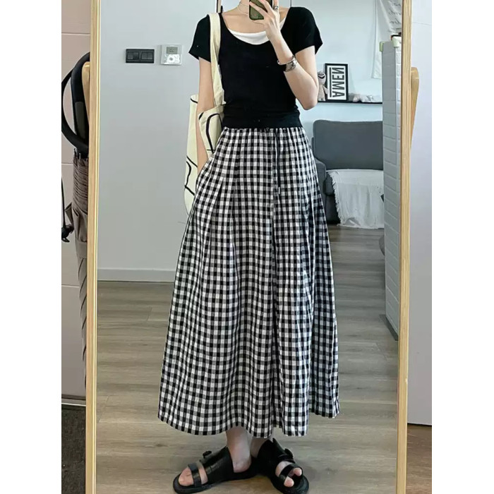 大碼梨形身材顯瘦中長半身裙經典黑白2025年夏季新款高腰A字長裙
