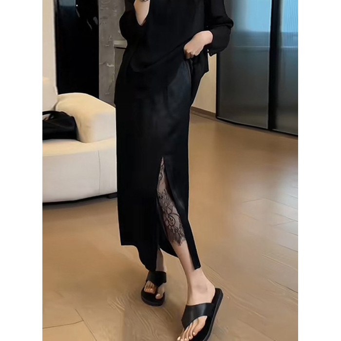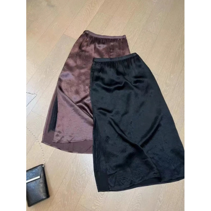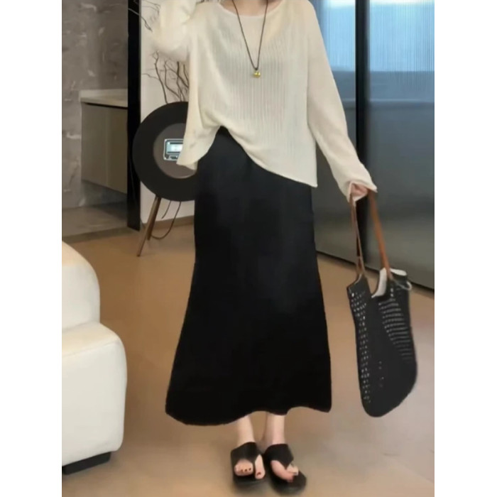 胖mm夏季薄款寬松半身裙女大碼高腰垂感顯瘦中長款側開叉A字裙子