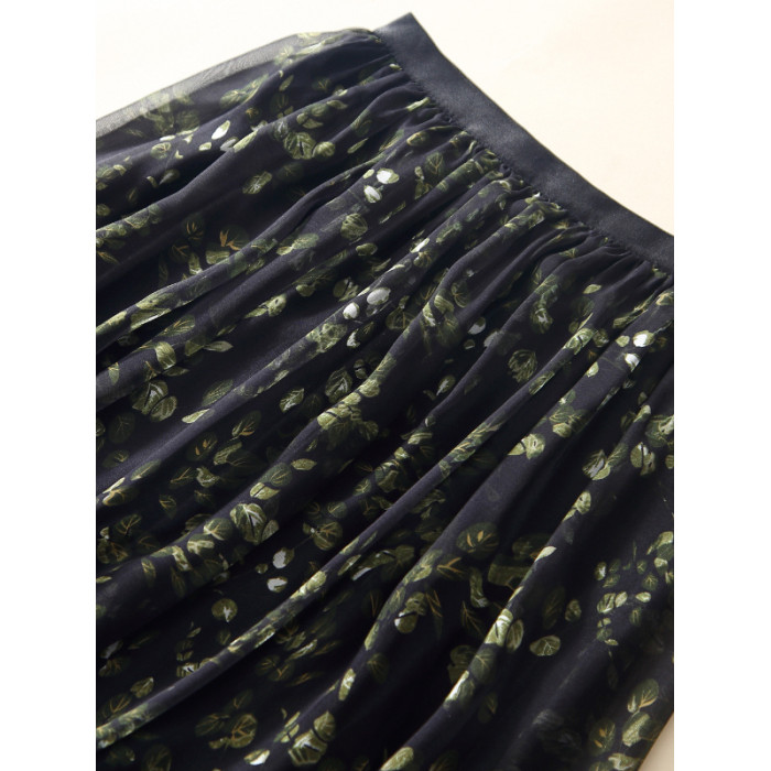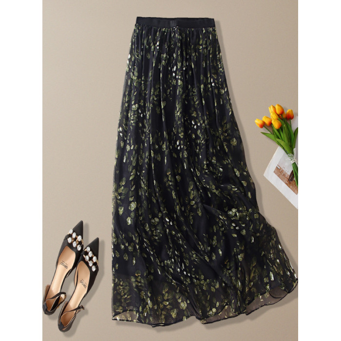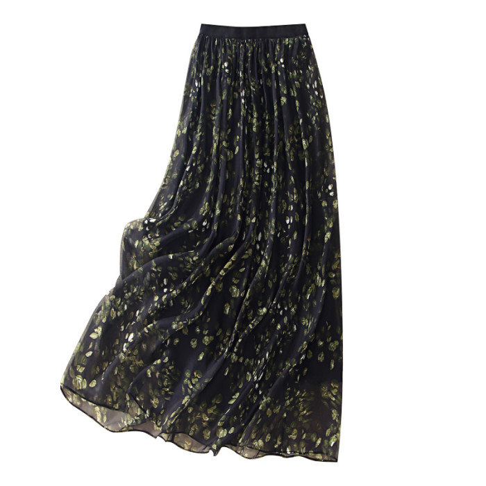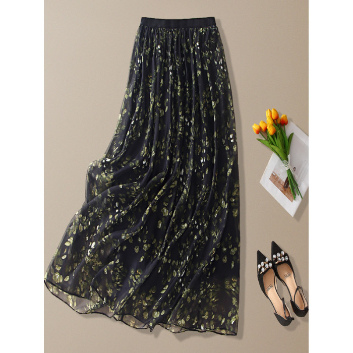 黑色碎花半身裙2025夏季新款高級感真絲桑蠶絲垂墜感顯瘦a字半裙