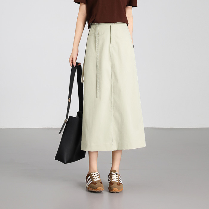 【專櫃新款】天絲醋酸後開叉半身裙女2025夏季薄款高腰顯瘦中長裙