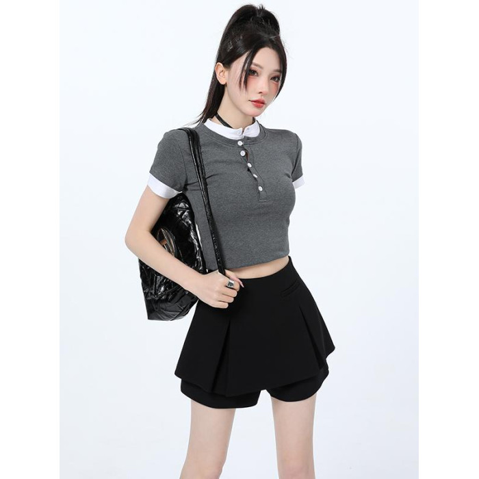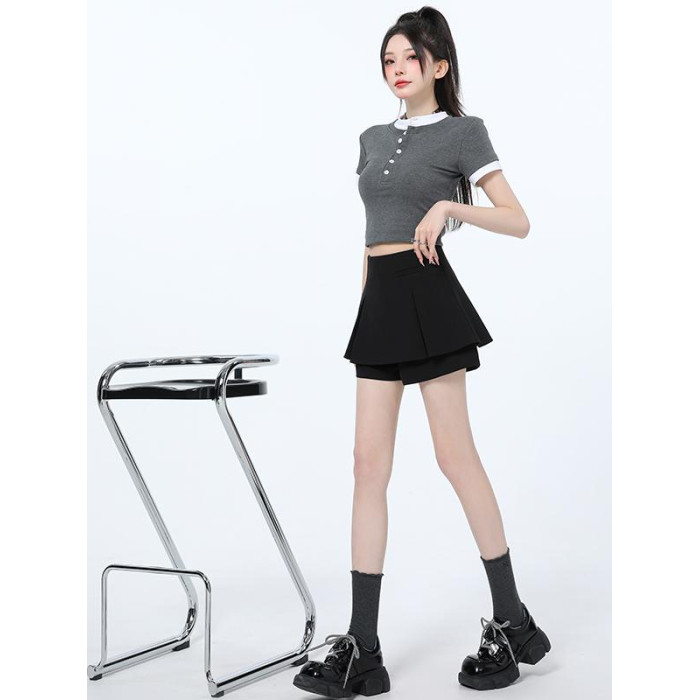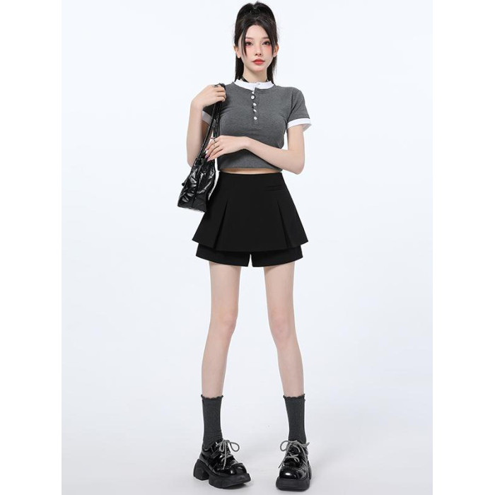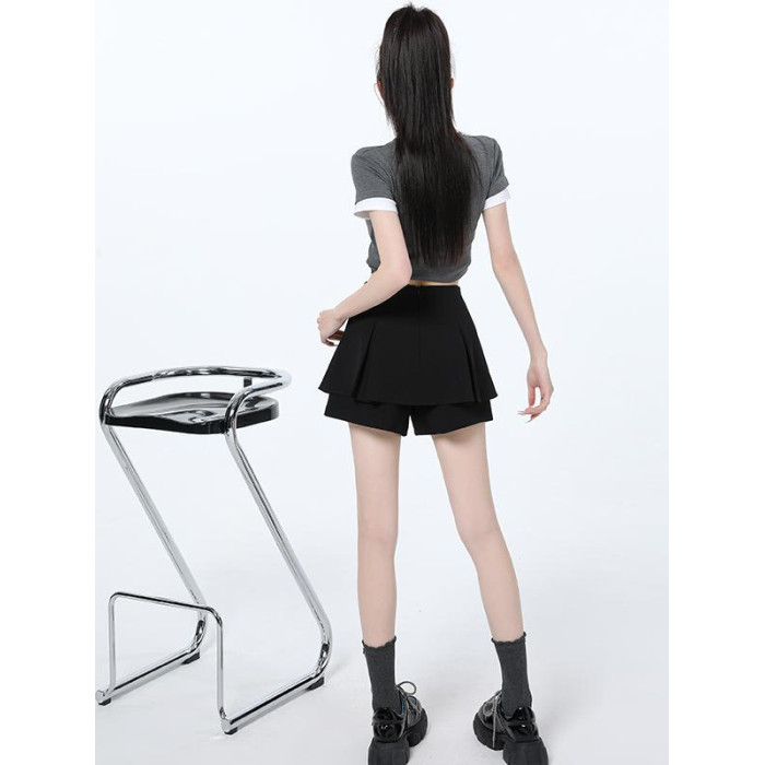黑色百褶西裝短褲女2025春夏季新款爆款高腰顯瘦假兩件a字短裙褲