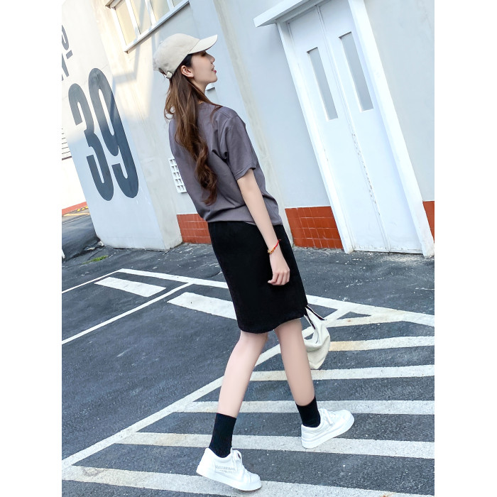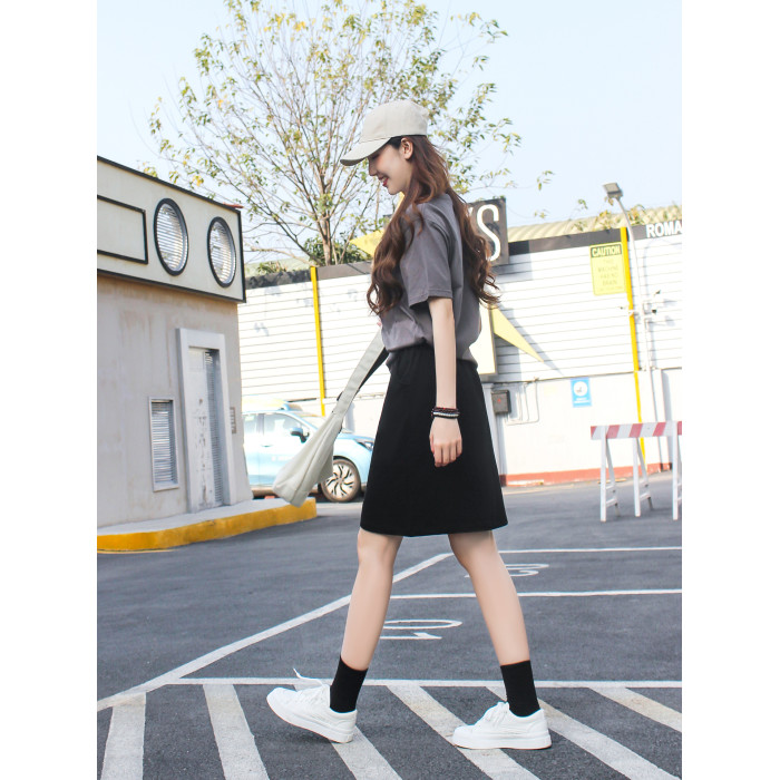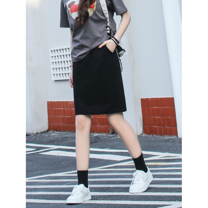 黑色半身裙女夏季薄款寬松大碼顯瘦百搭松緊腰休閒小個子直筒中裙