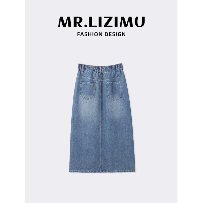 李子木牛仔半身裙女2025夏季新款高腰水洗開叉時尚百搭中長款裙子