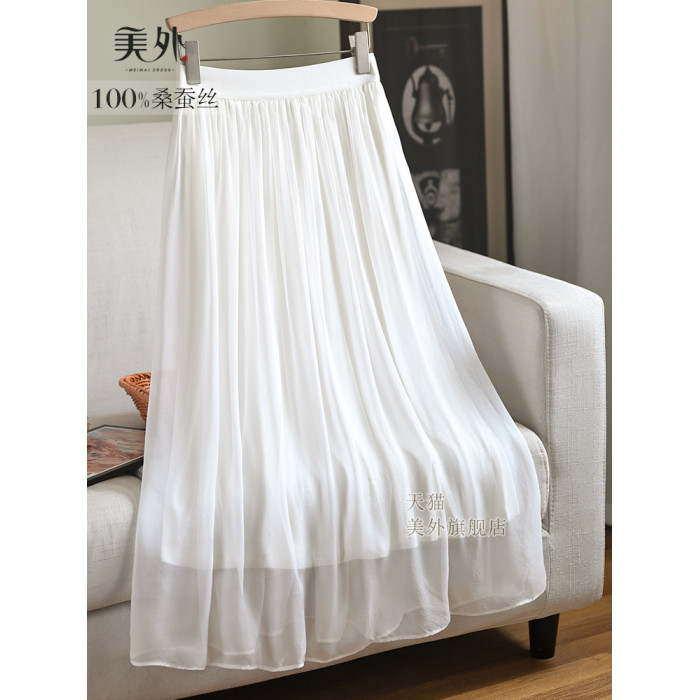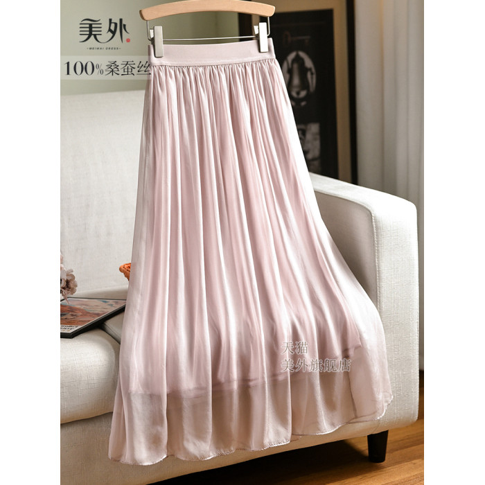 簡約風桑蠶絲純色半身裙日韓穿搭小衆莫蘭迪色系真絲半裙夏季新款