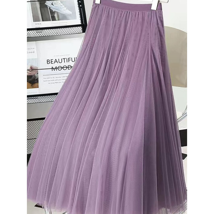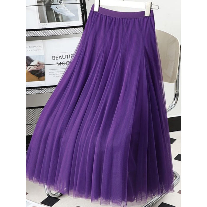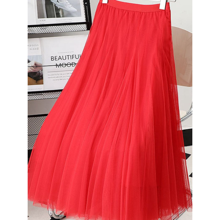 網紗半身裙女中長款720度大擺舞蹈裙新疆舞裙廣場舞紅裙子高腰A字