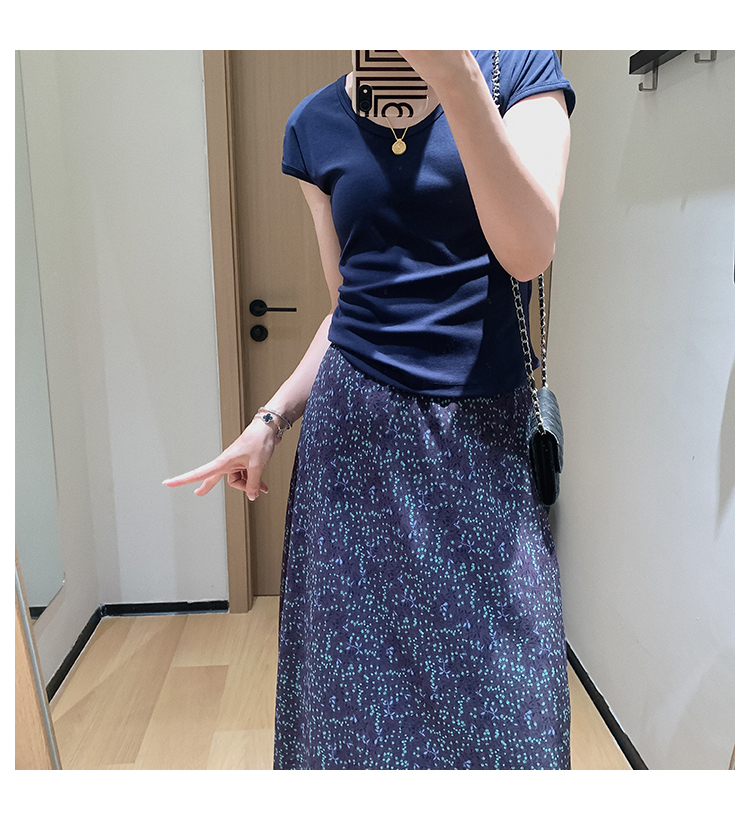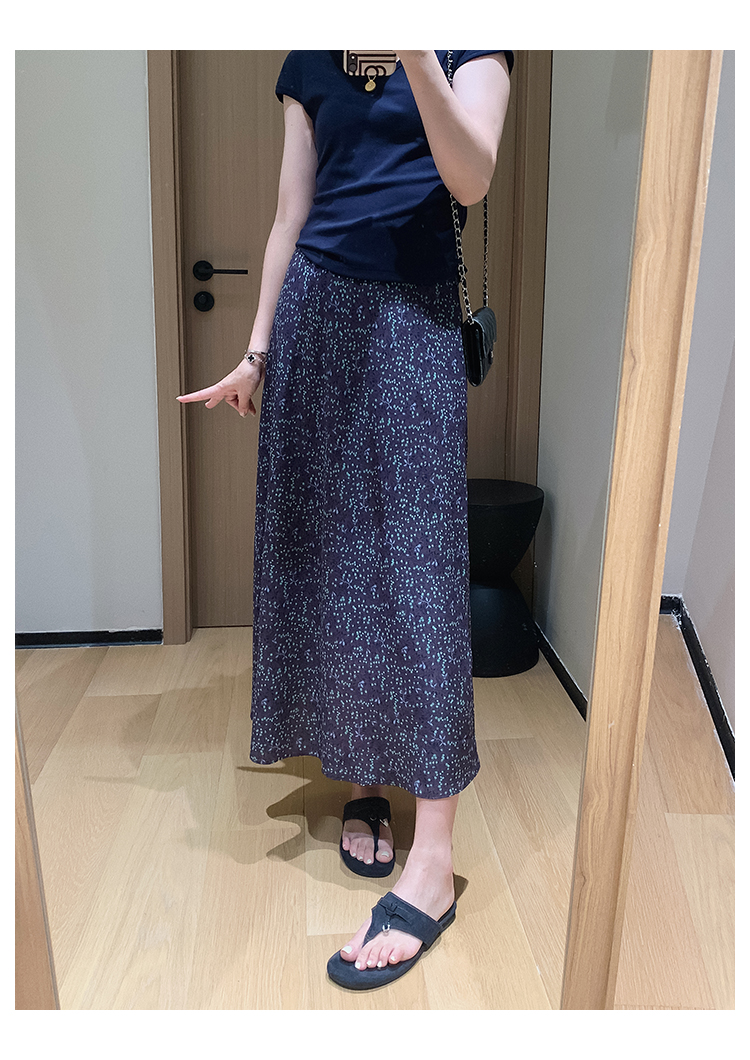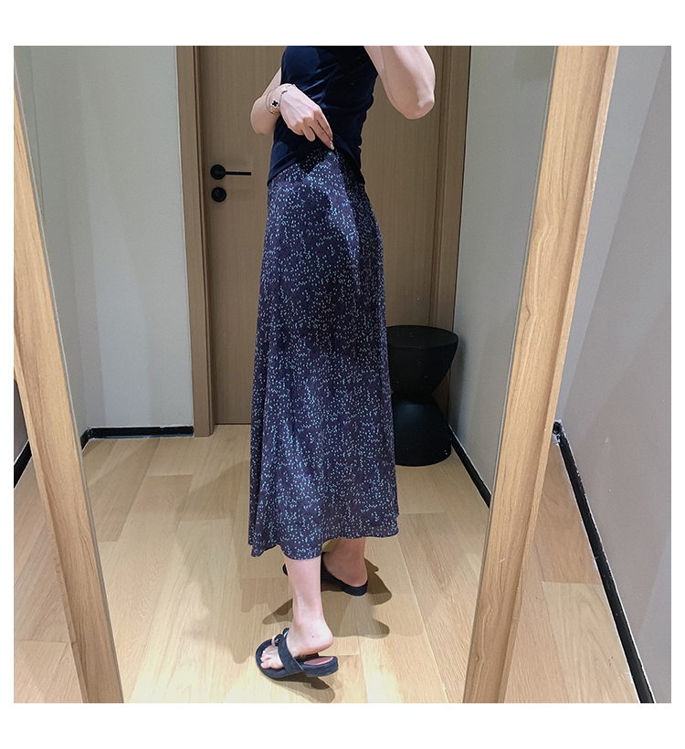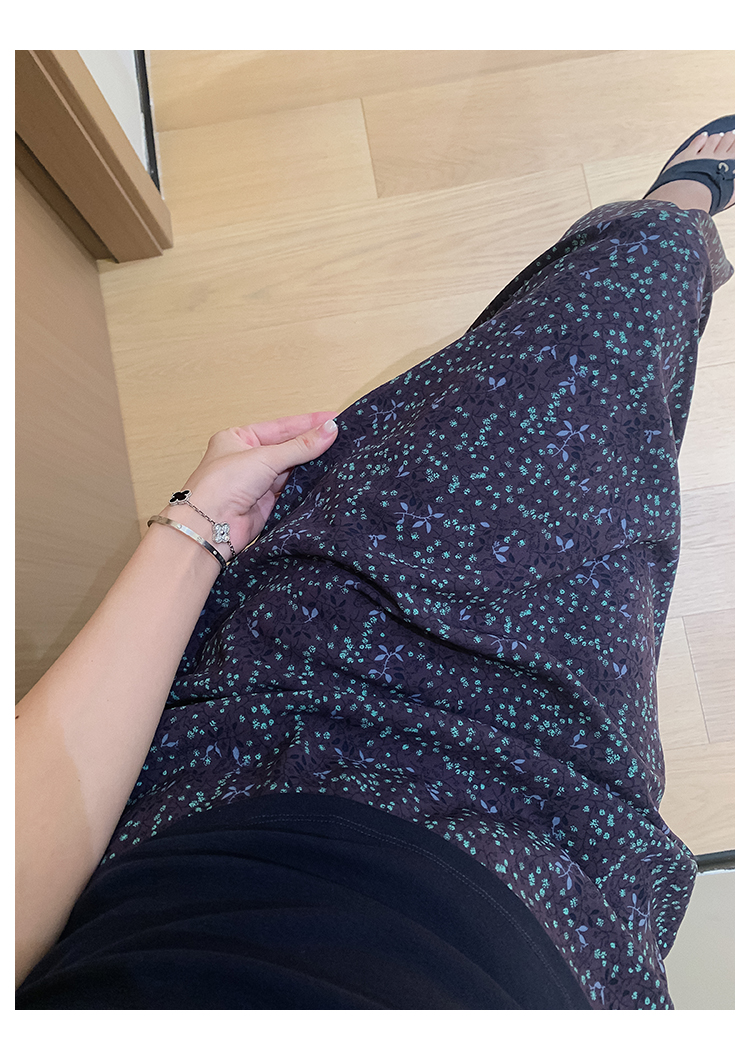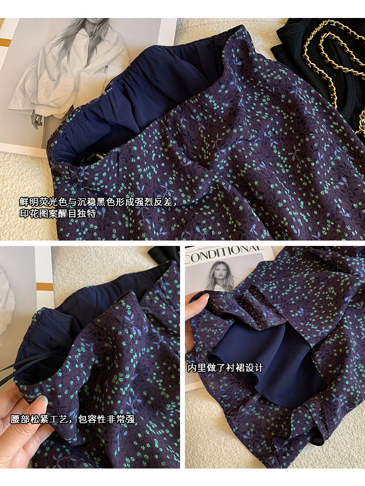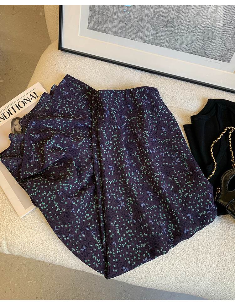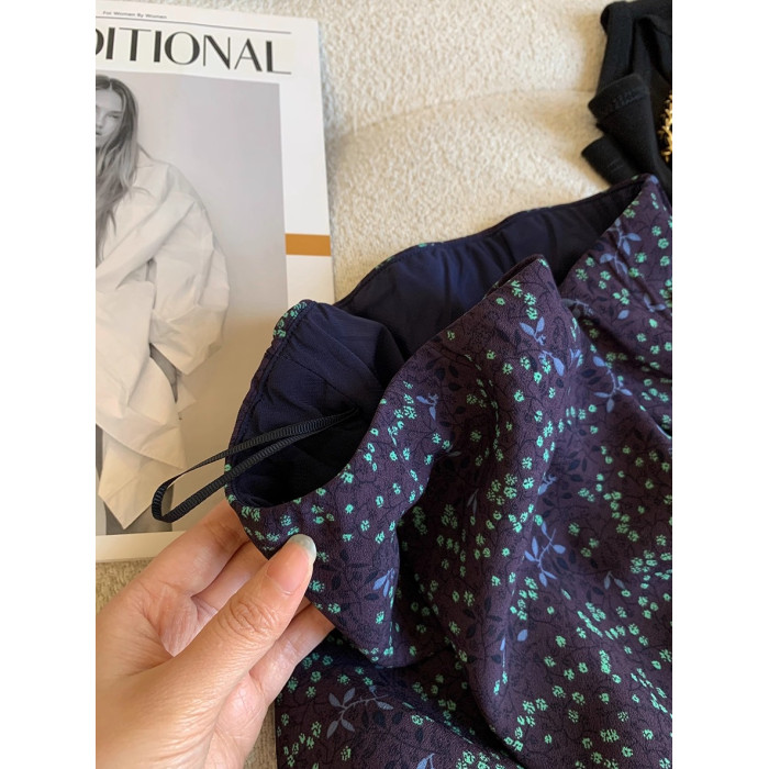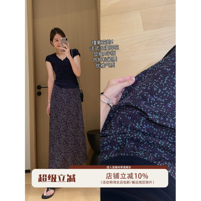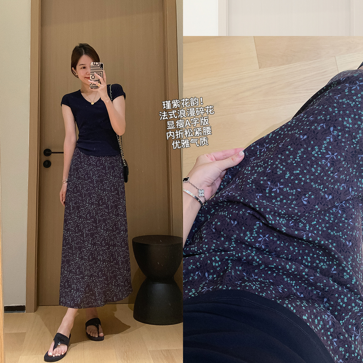 大叮自製瑾紫花韻!法式浪漫碎花裙女內折松緊腰A字雪紡半身裙