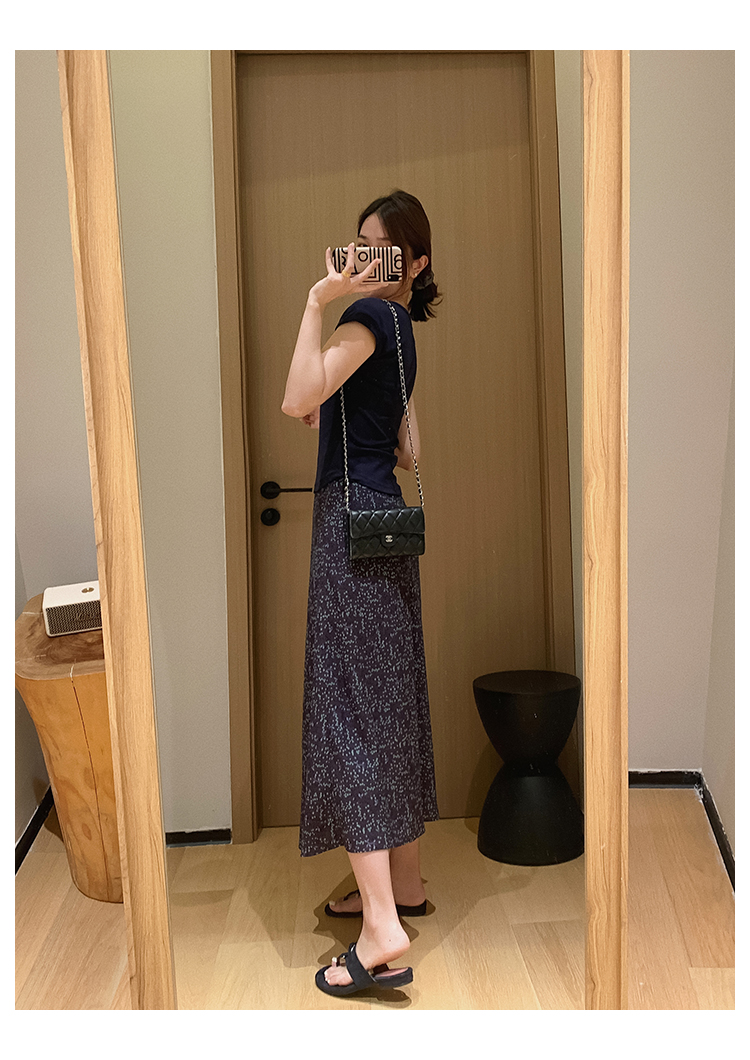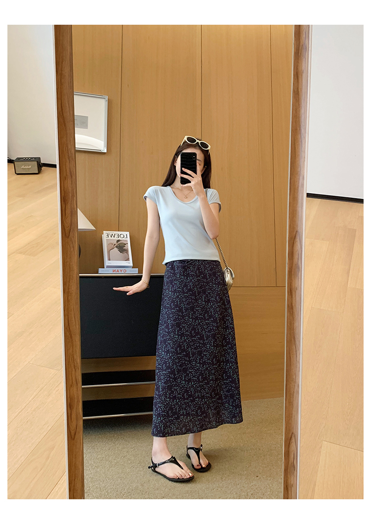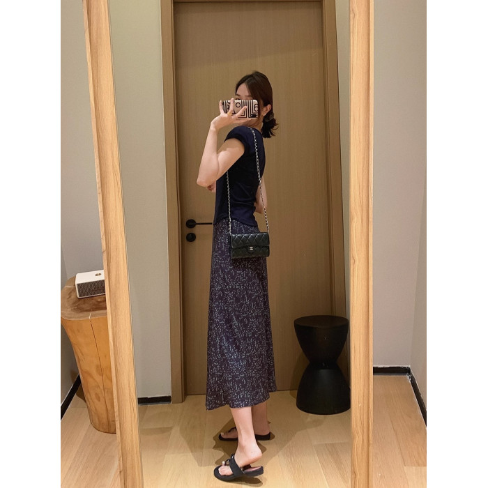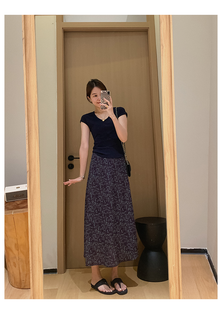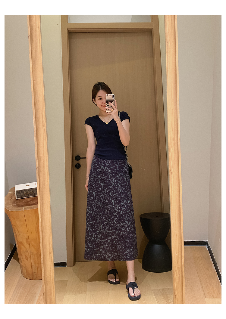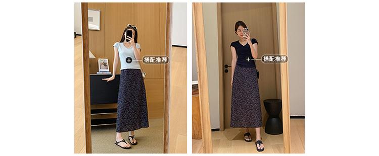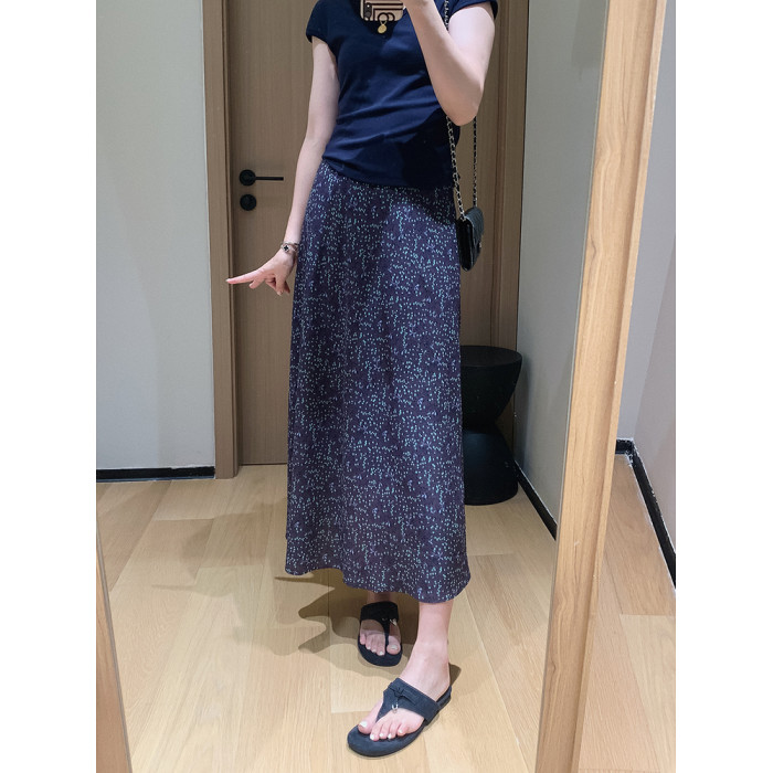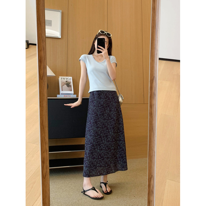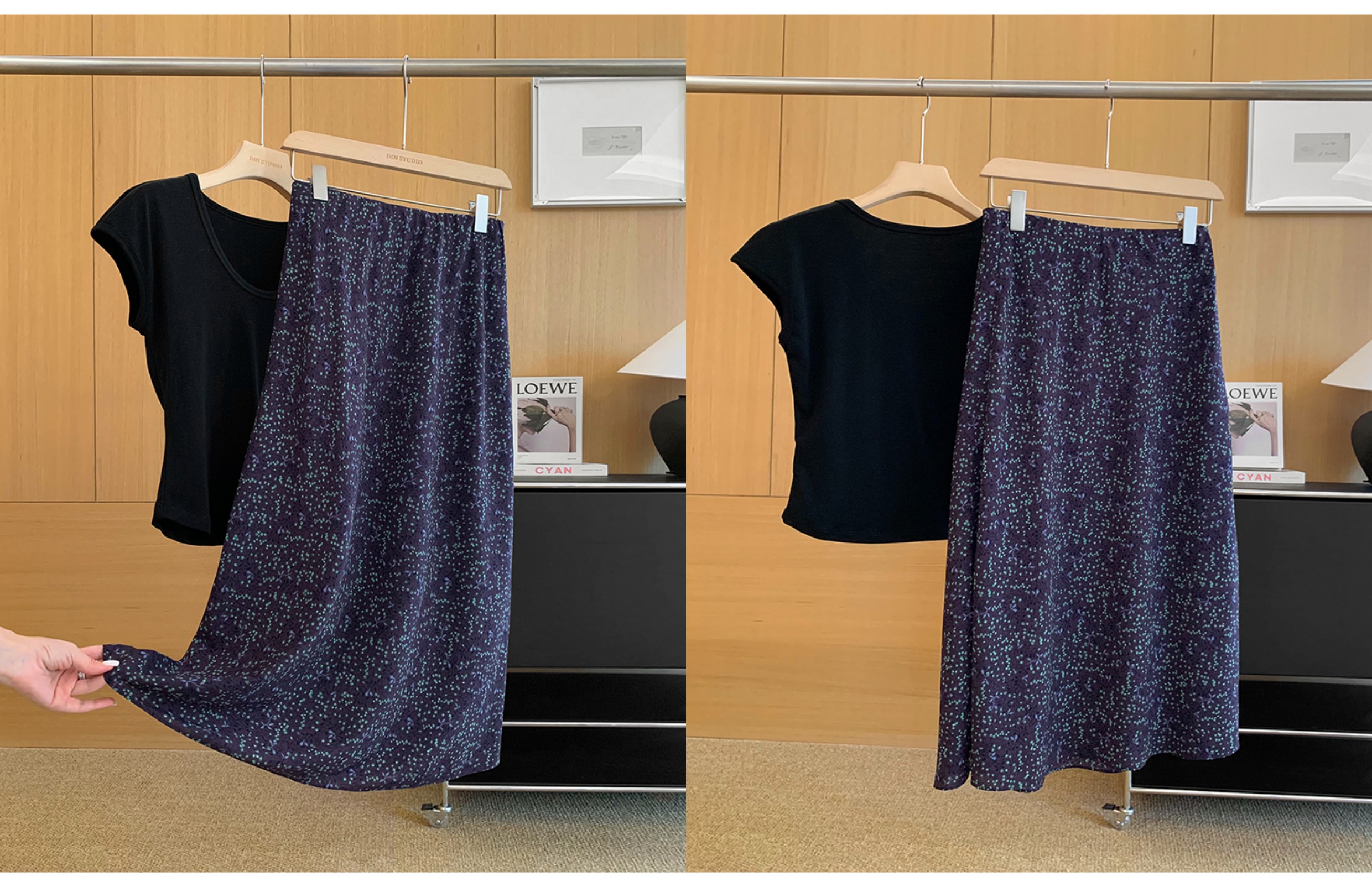 大叮自製瑾紫花韻!法式浪漫碎花裙女內折松緊腰A字雪紡半身裙