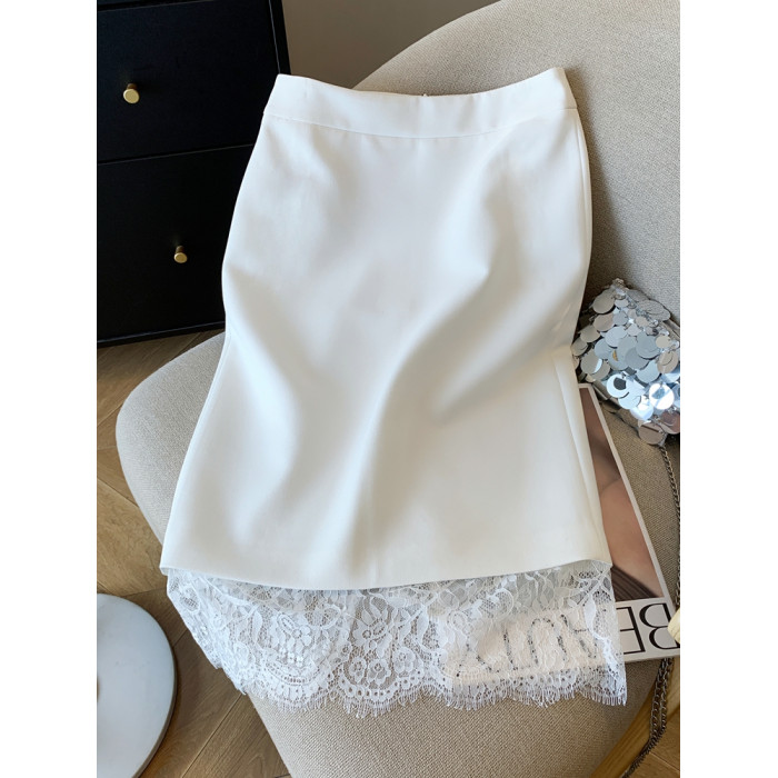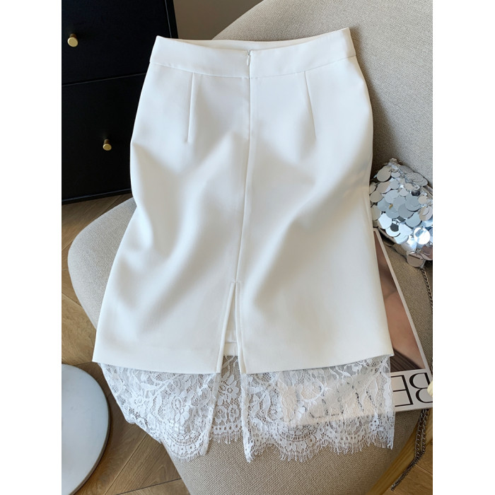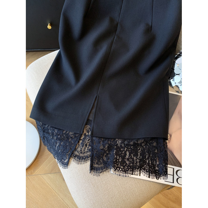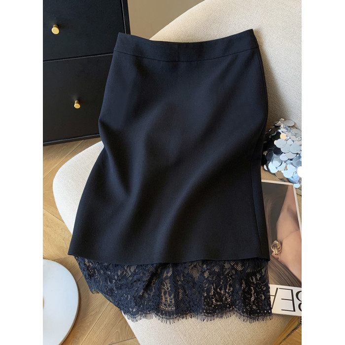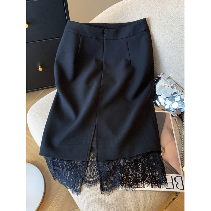 金秘書輕奢蕾絲拼接半身裙女2025秋季新款職場白領直筒一步包臀裙