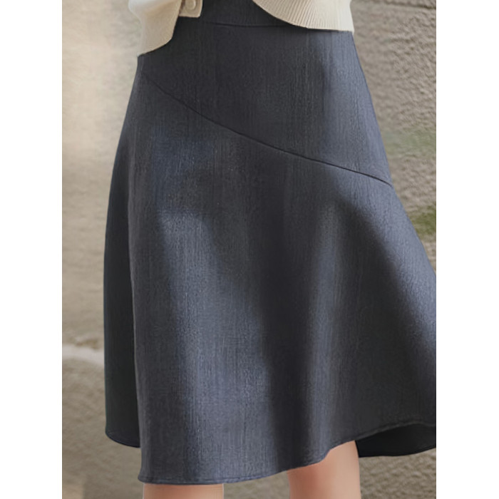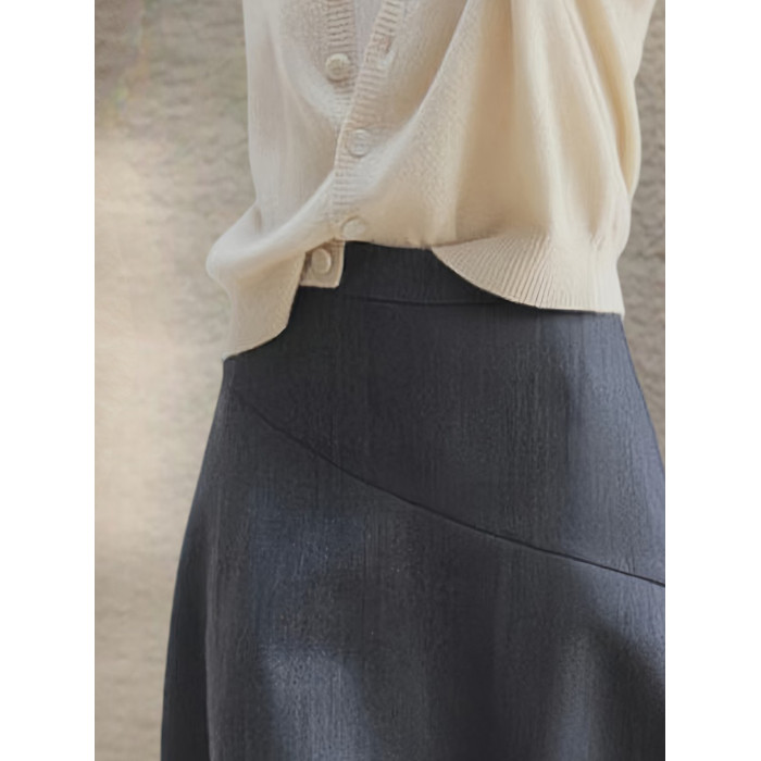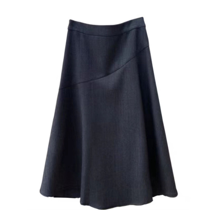 Basic House/百家好灰色高腰西裝半身裙女士夏季通勤顯瘦A字裙子