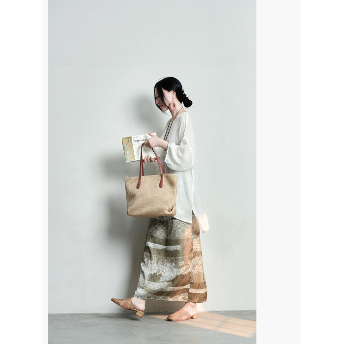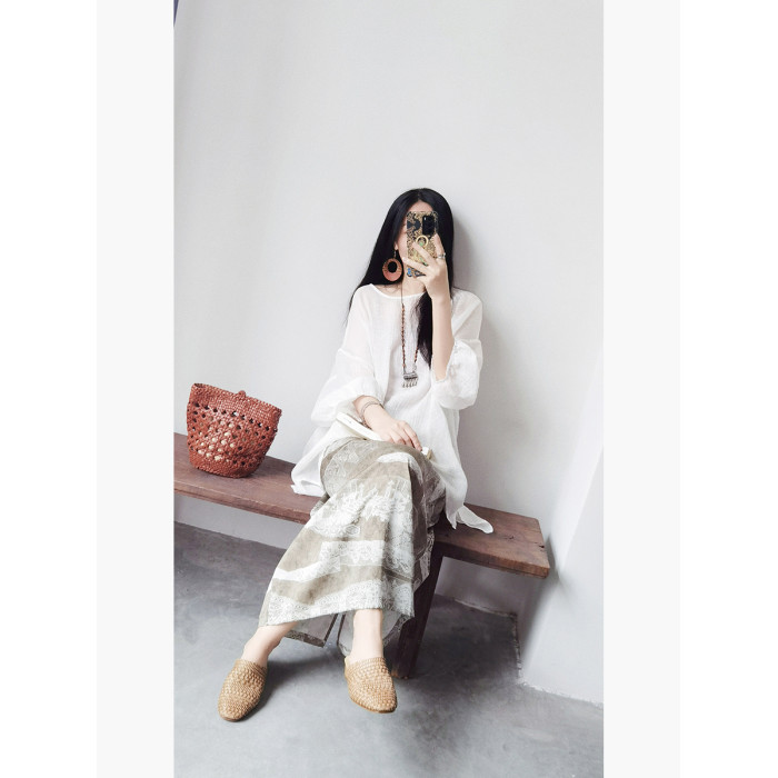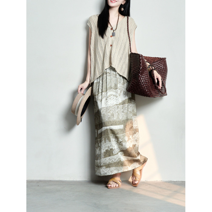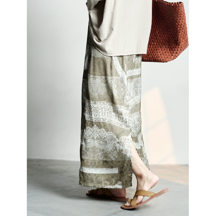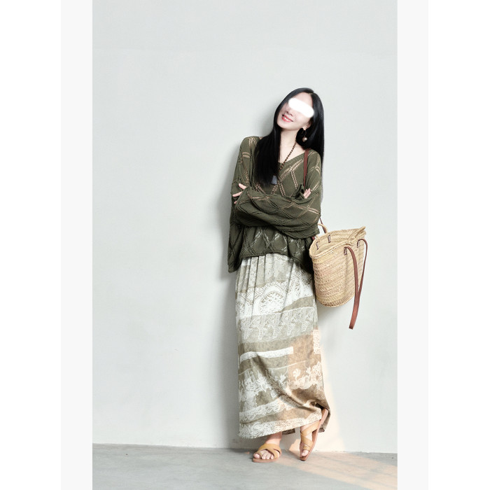 爲止/2025夏茂 原創設計 文藝復古印花垂感開叉直筒半身裙052815