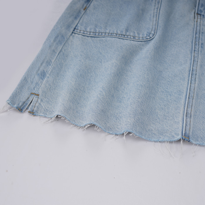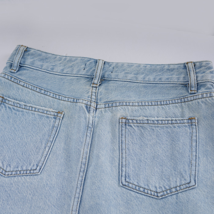 [專櫃同款]Basic House百家好夏水洗牛仔毛邊高腰半身短裙JS-598