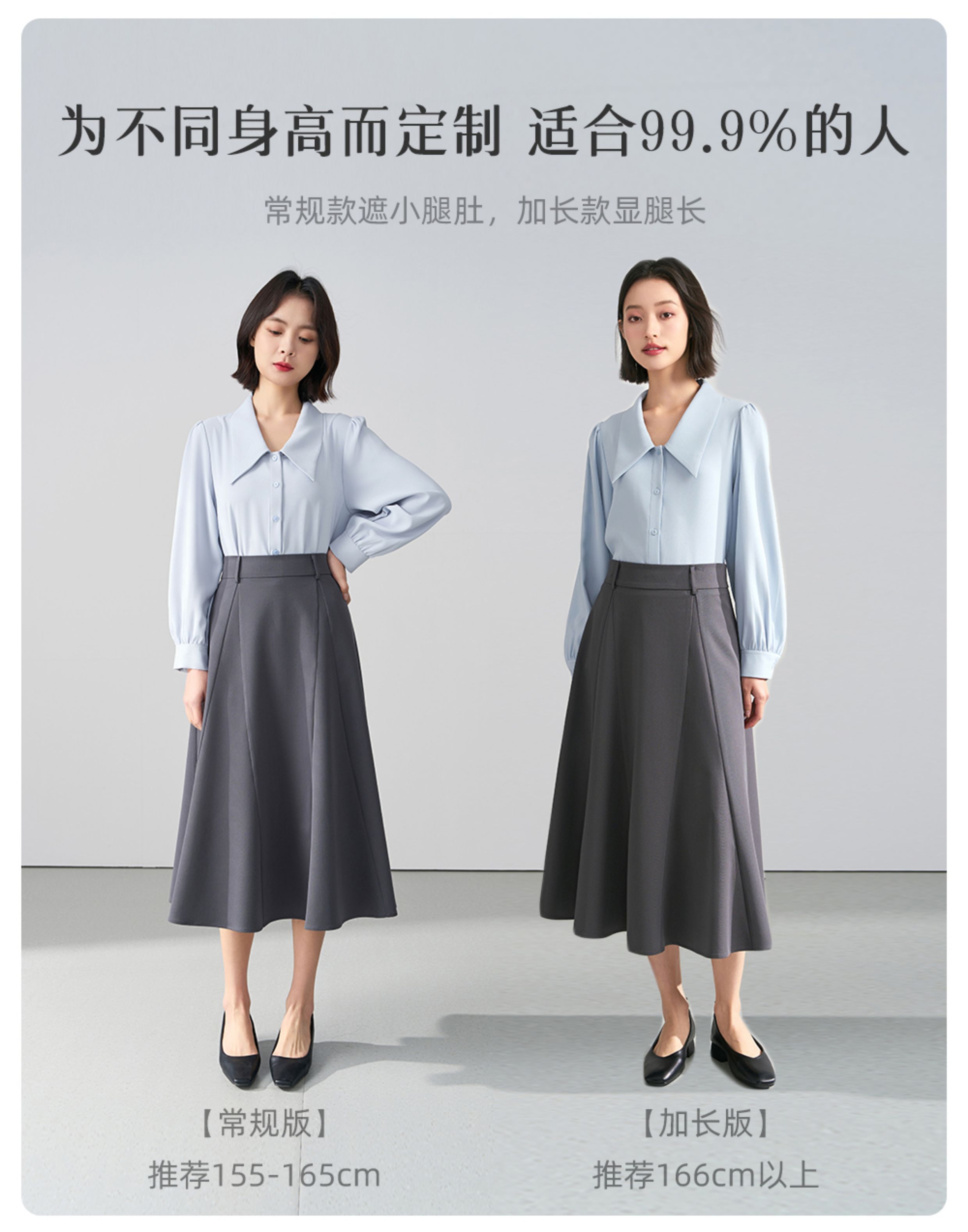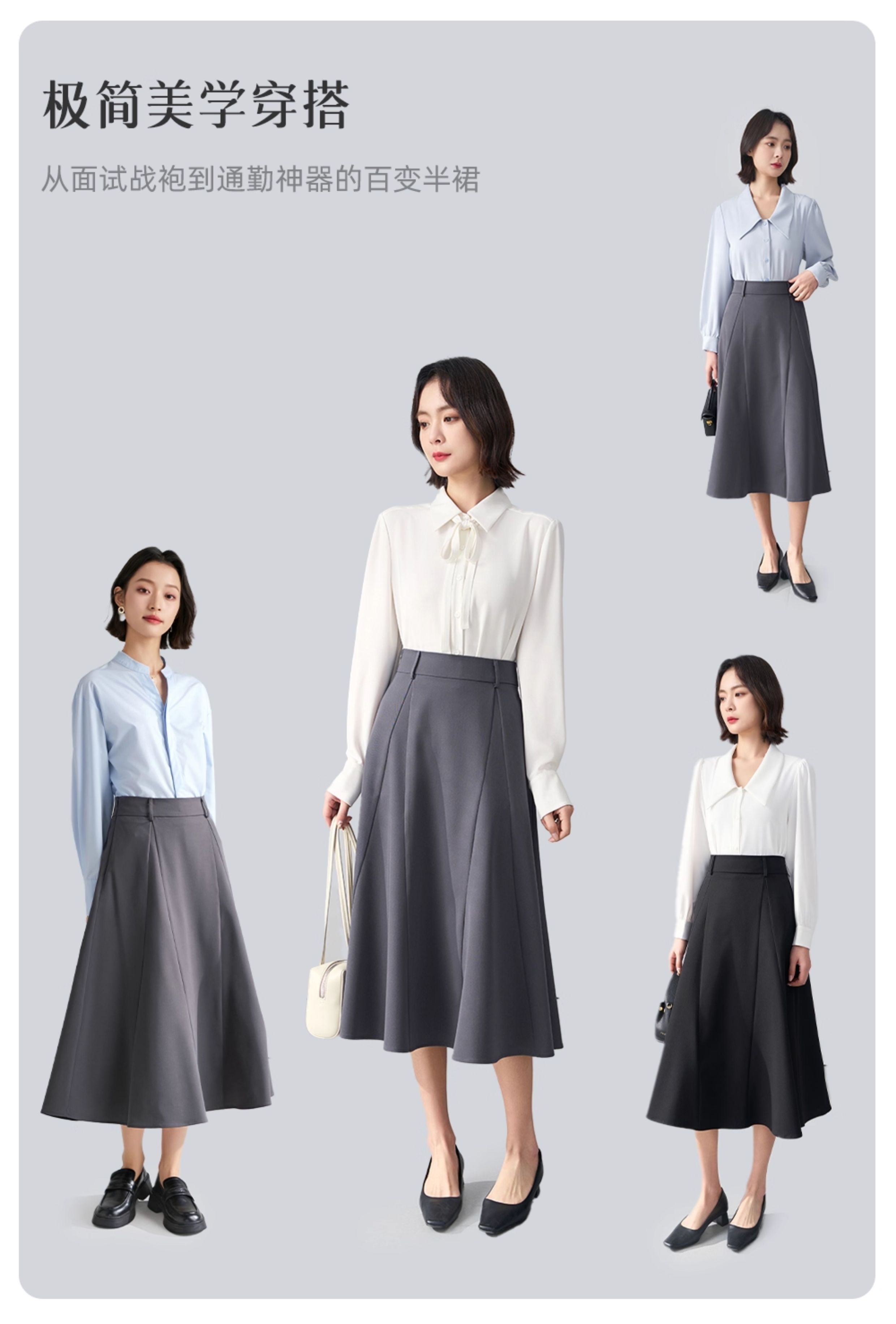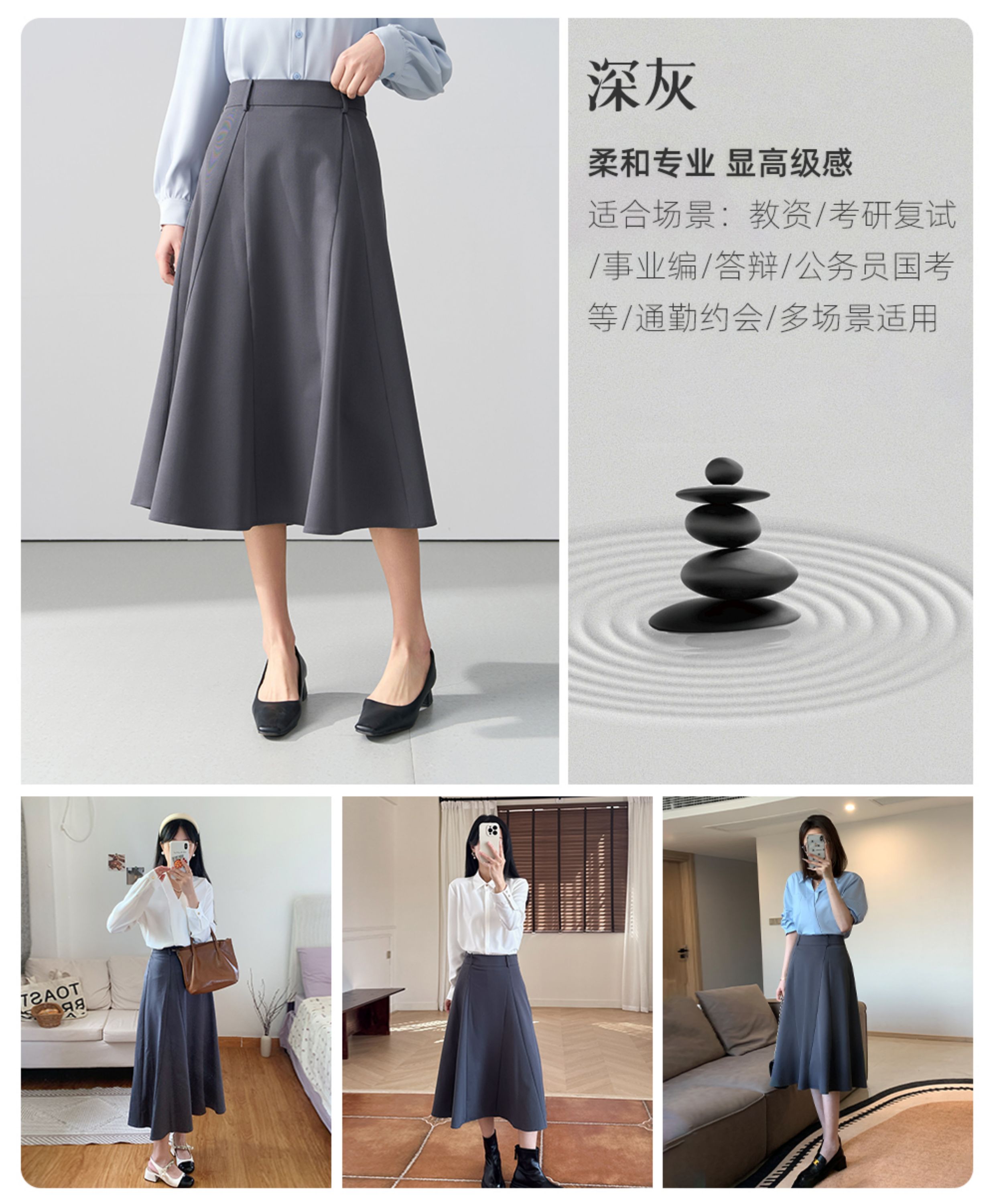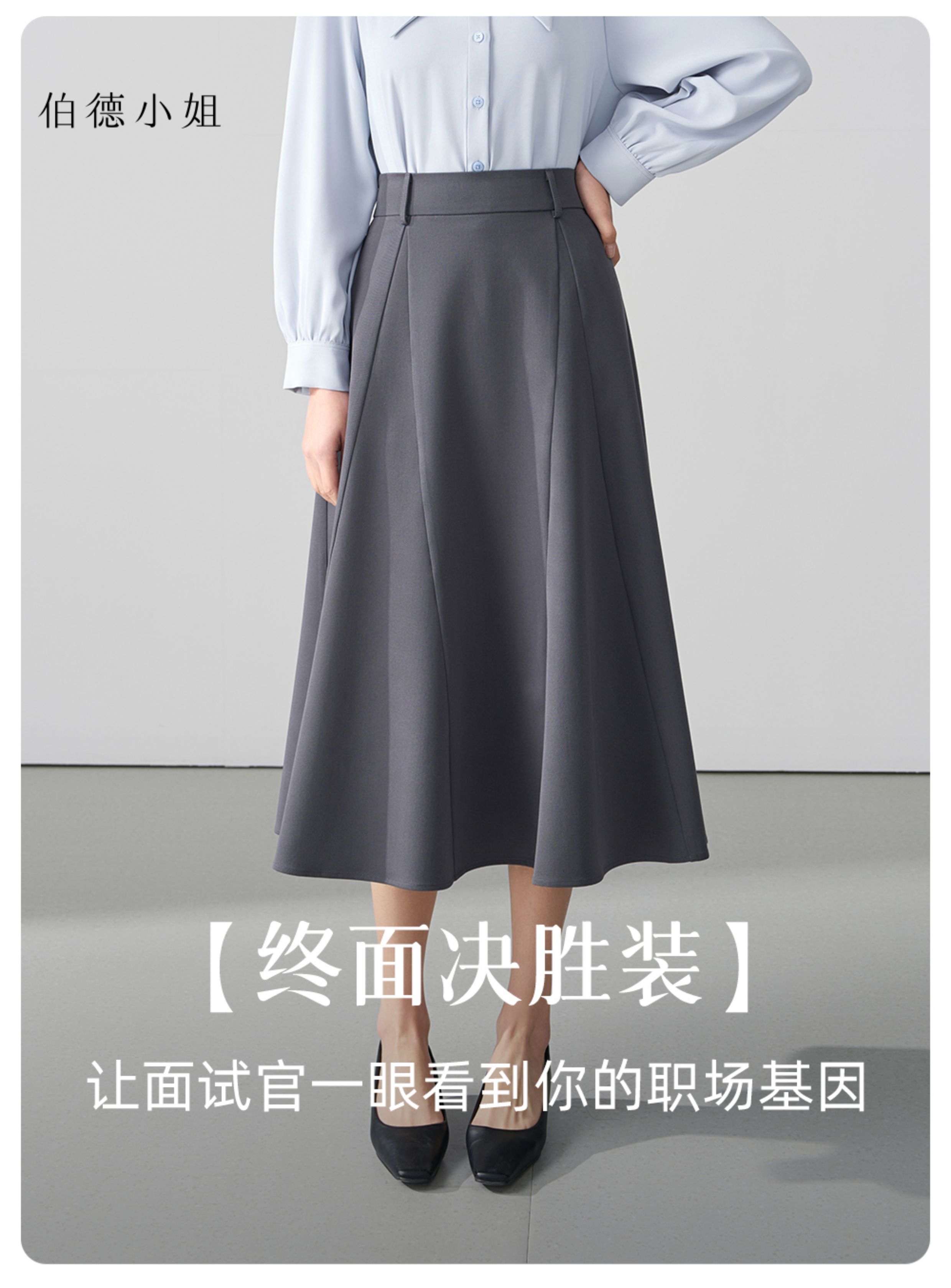 伯德小姐灰色西裝半身裙女職場面試長裙正裝半裙小個子職業繖裙子