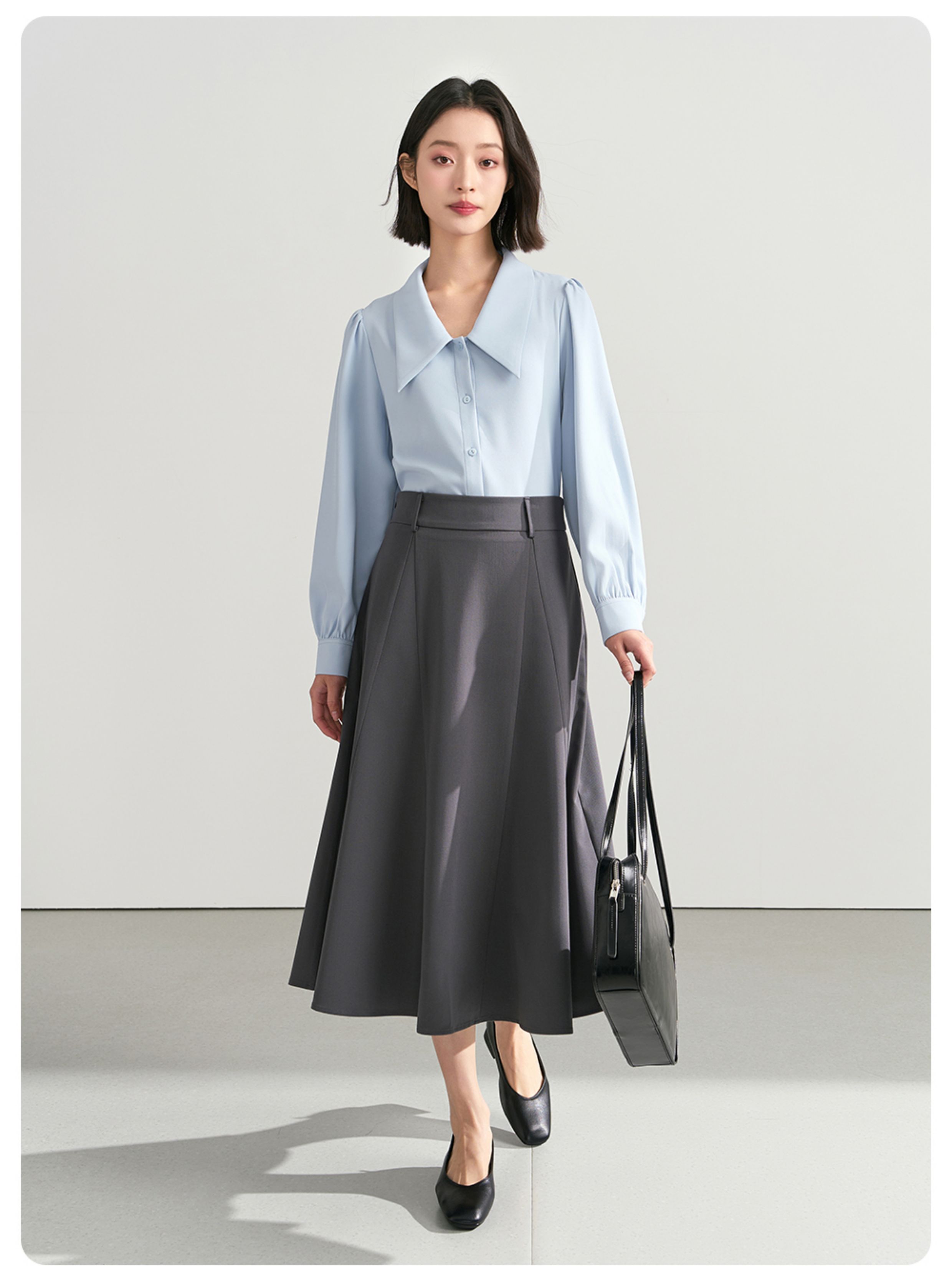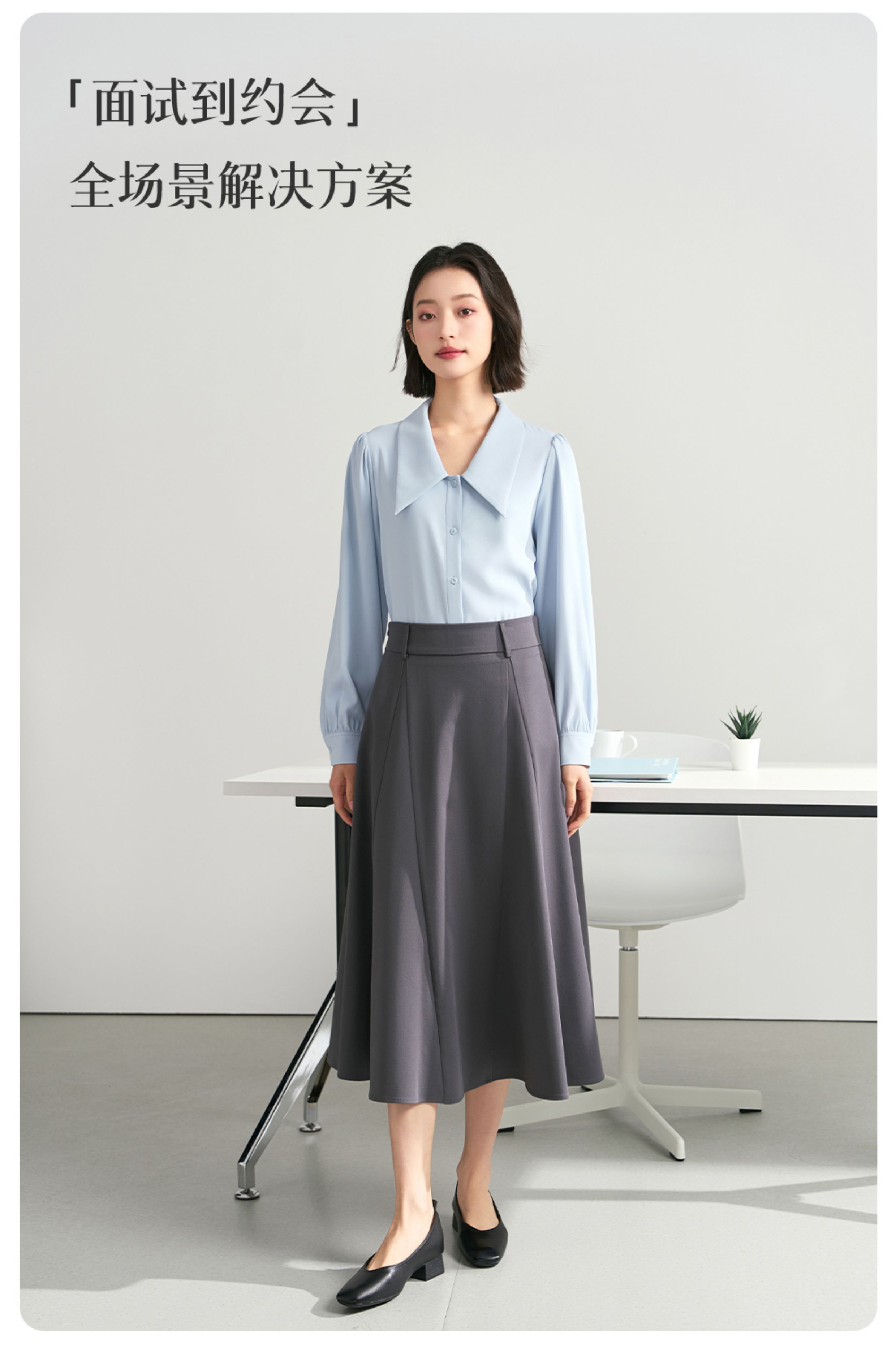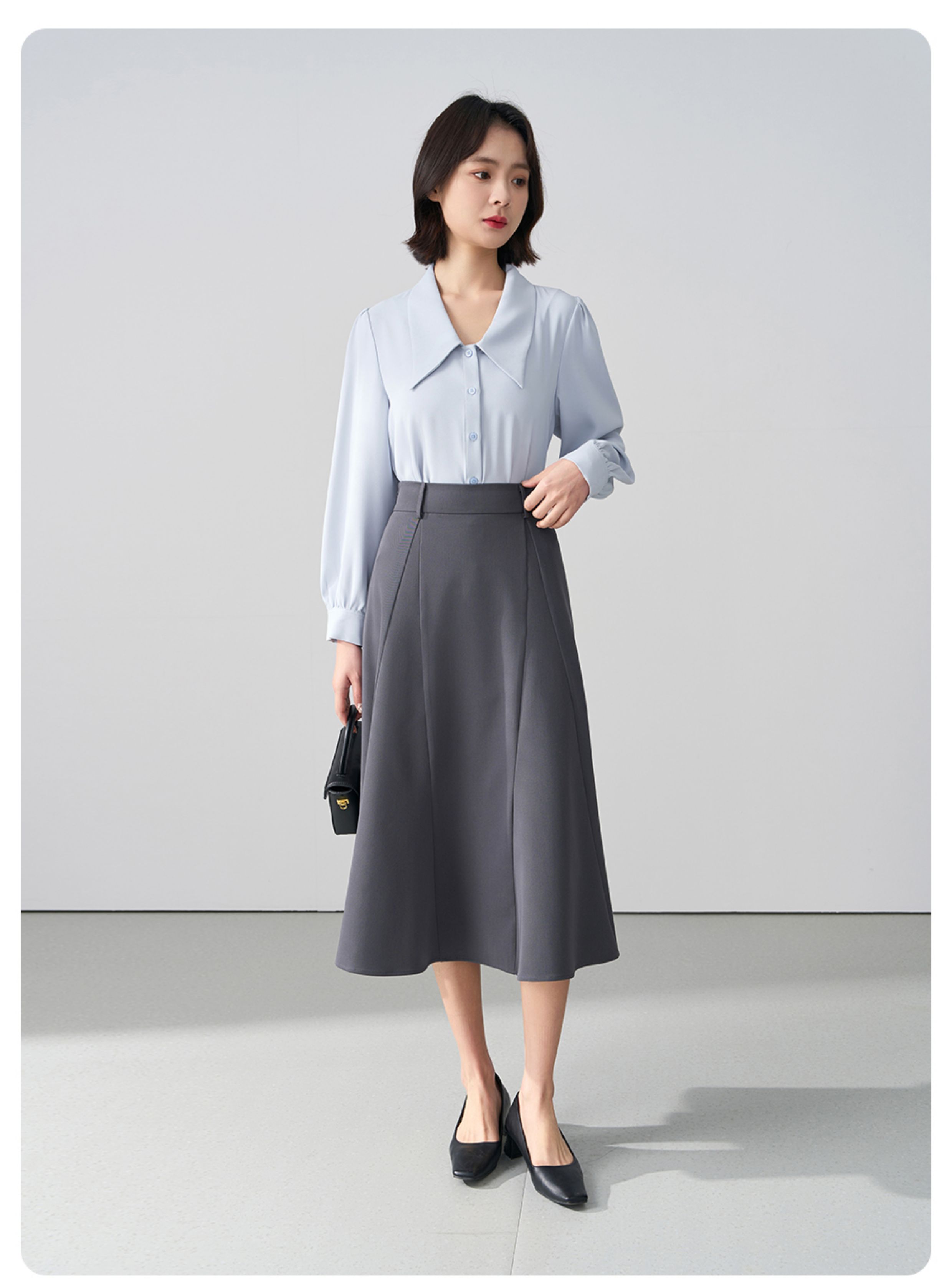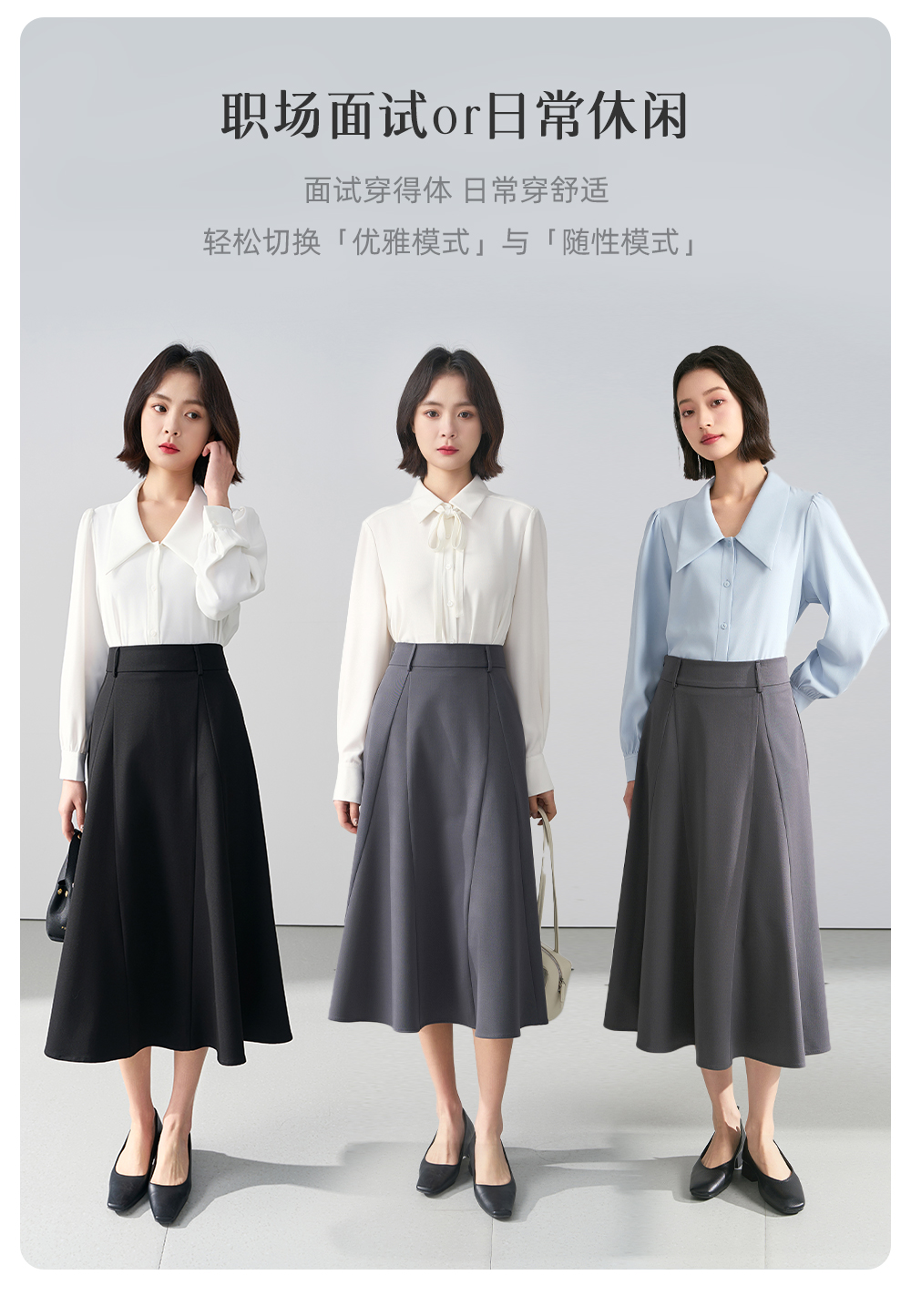 伯德小姐灰色西裝半身裙女職場面試長裙正裝半裙小個子職業繖裙子