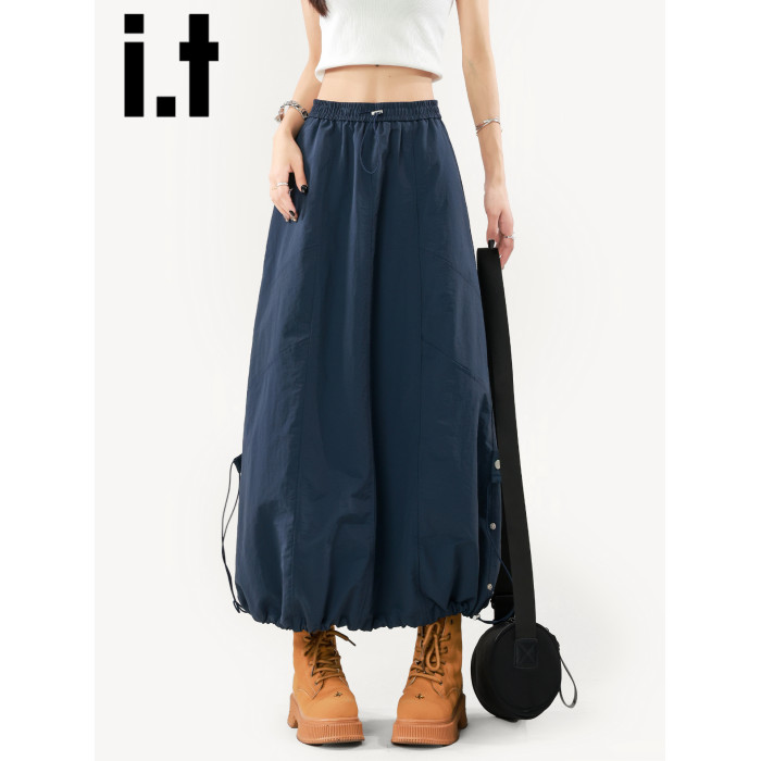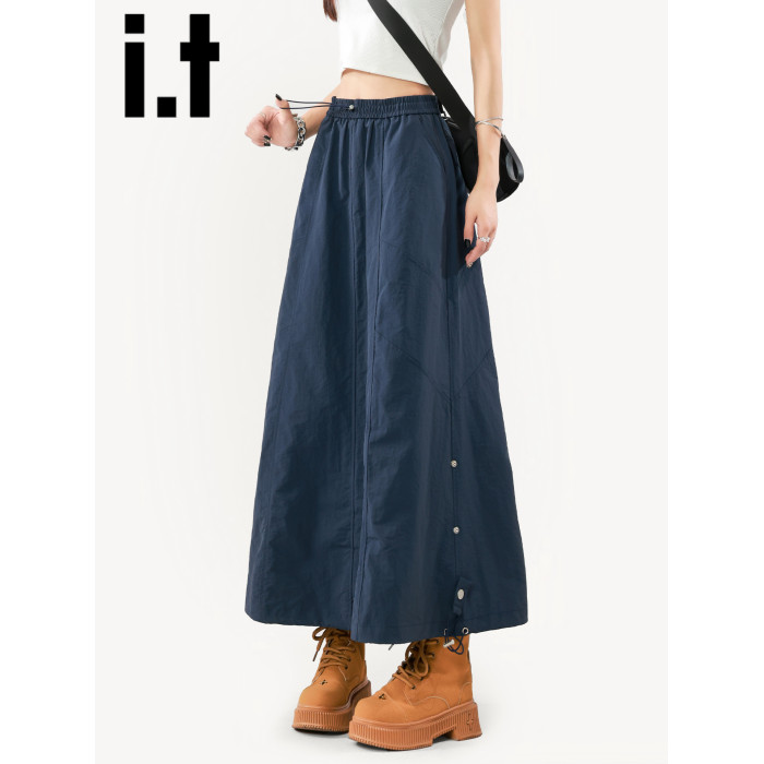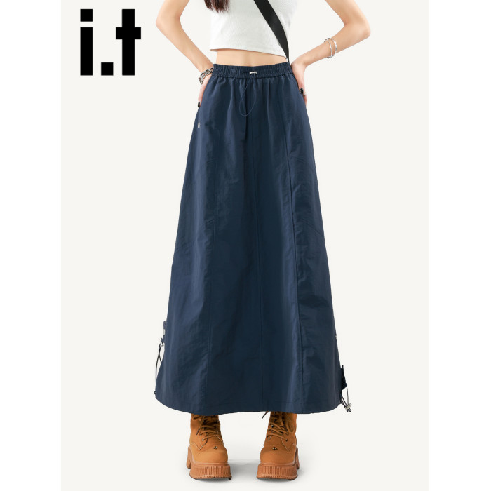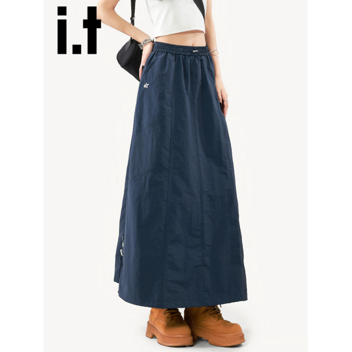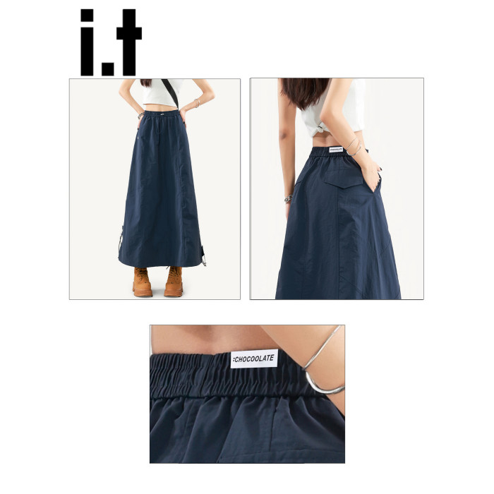 it:CHOCOOLATE藏青色半身裙女2025新款夏季山系繖裙美式A字工裝裙