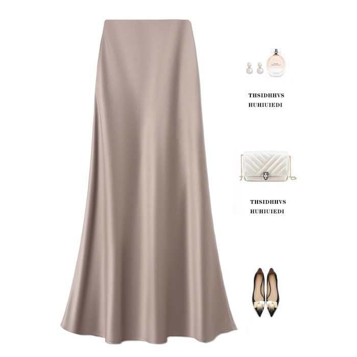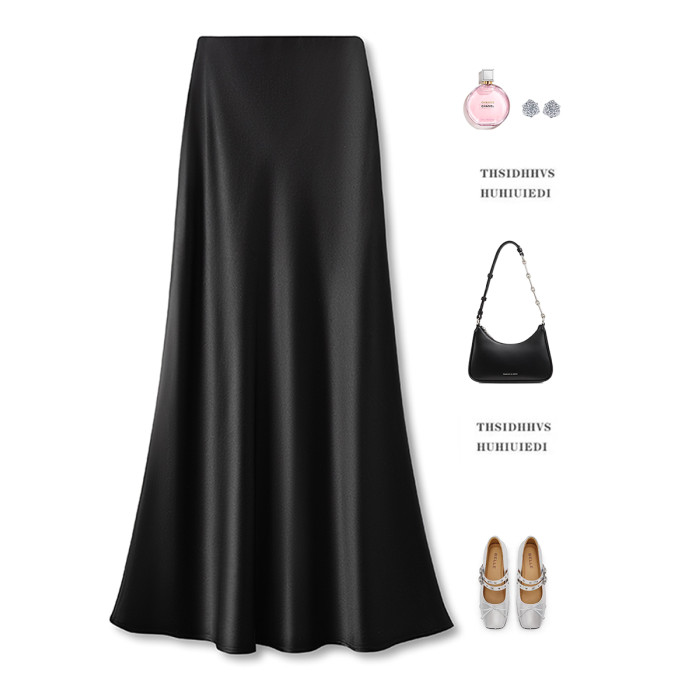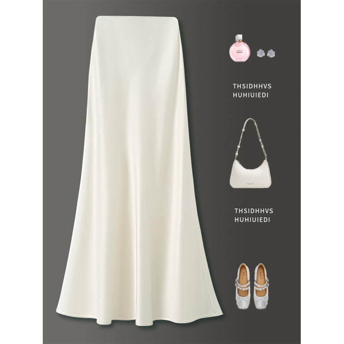 KK家/100%醋酸半身裙女夏季新款垂順高級感松緊腰顯瘦小a魚尾裙
