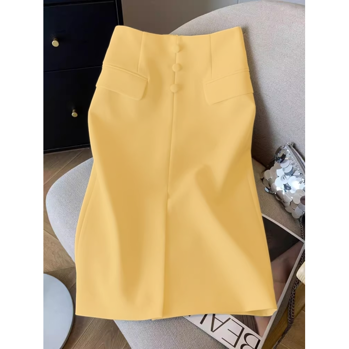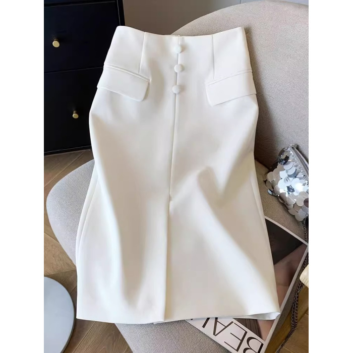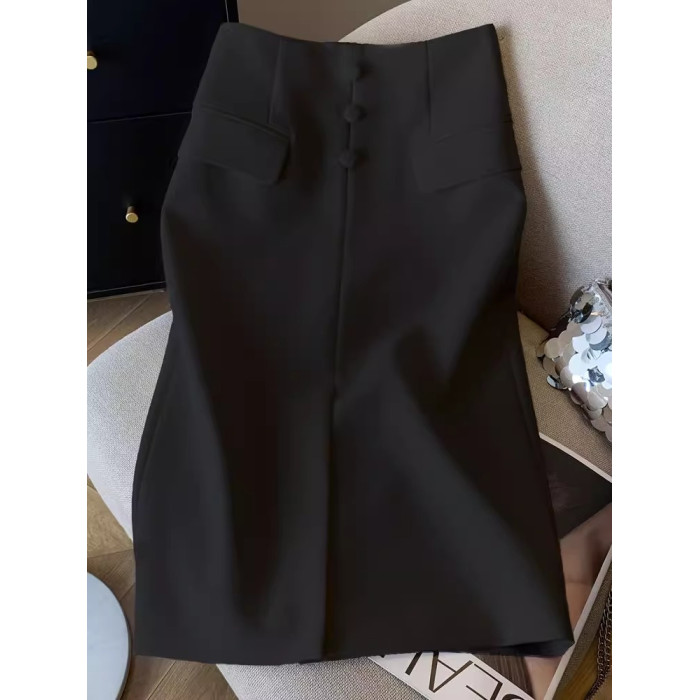 韓版氣質半身裙女2025春夏新款高腰前開叉中長款高級感一步西裝裙