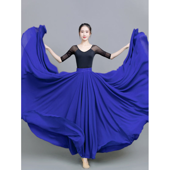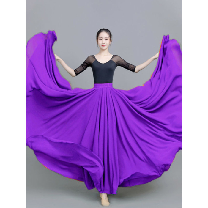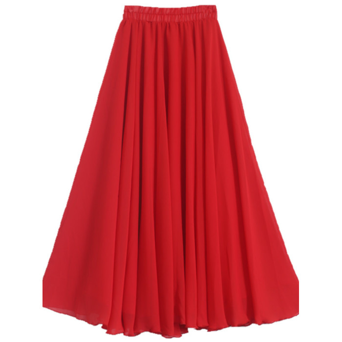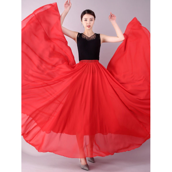 720度大擺雪紡半身裙女春夏季大紅新疆舞蹈裙演出廣場舞沙灘長裙