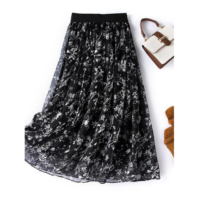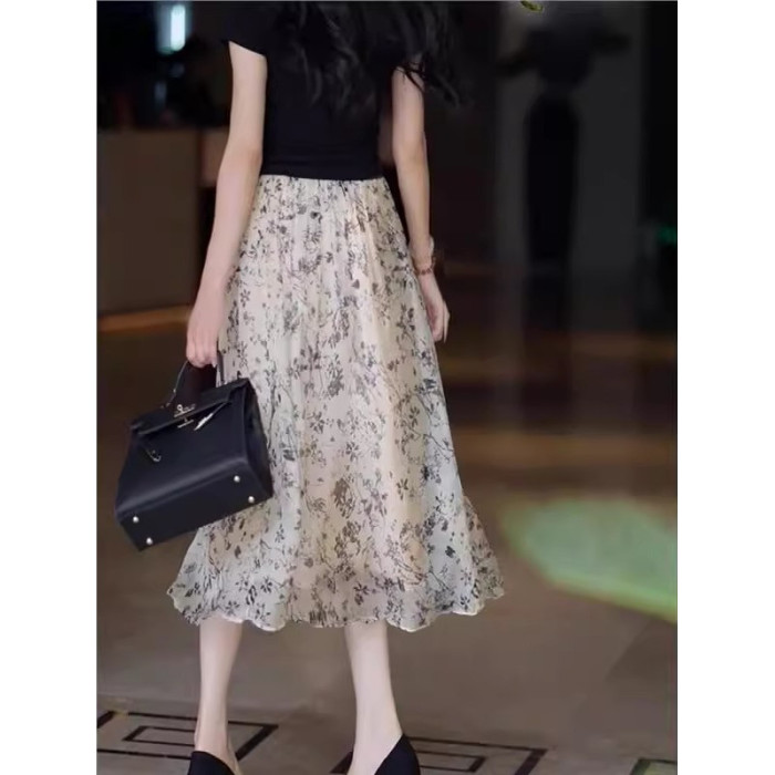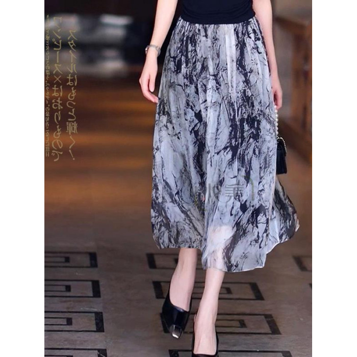 奧萊折釦店印花真絲半身裙溫柔碎花大擺優雅梨型遮胯顯瘦夏季