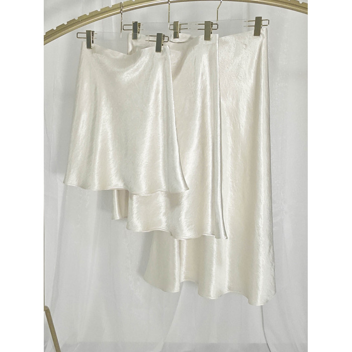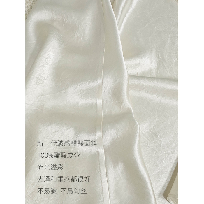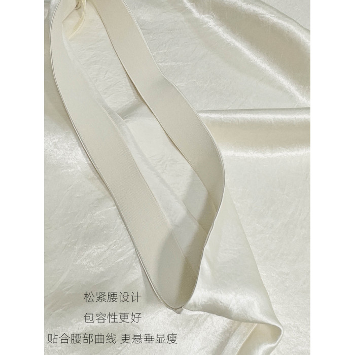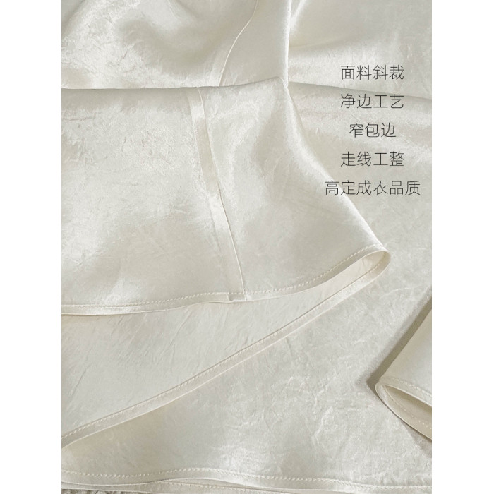 真醋酸褶皺肌理感米白色半身裙a字繖裙短中長款魚尾垂感顯瘦減齡