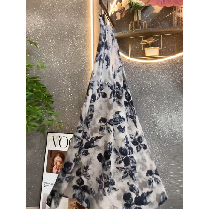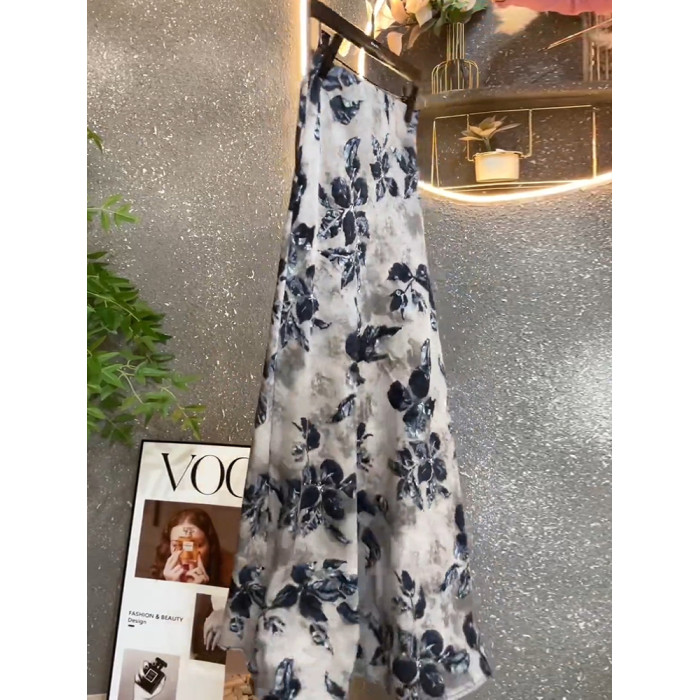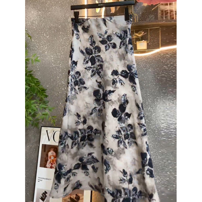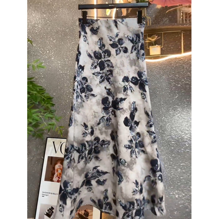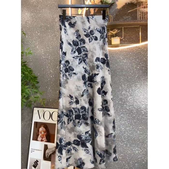 印花緞面半身裙女夏季2025新款高腰包臀魚尾裙高級感中長氣質裙子