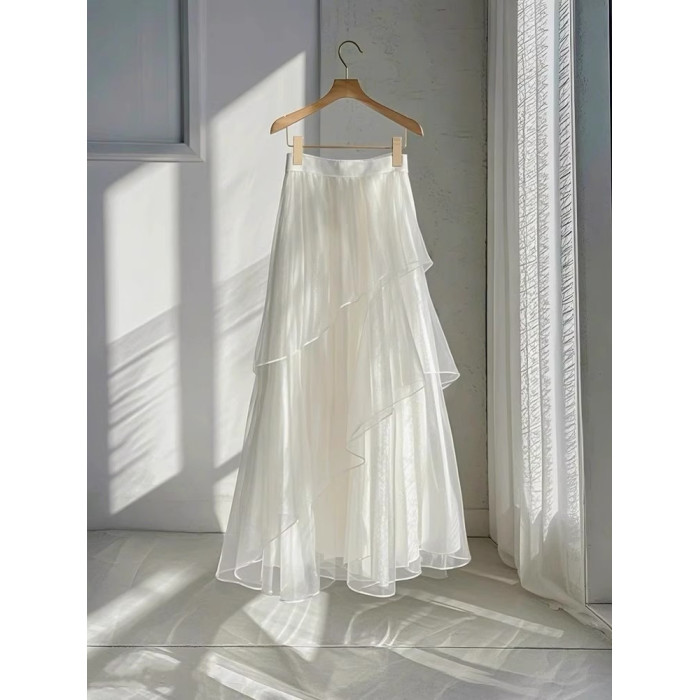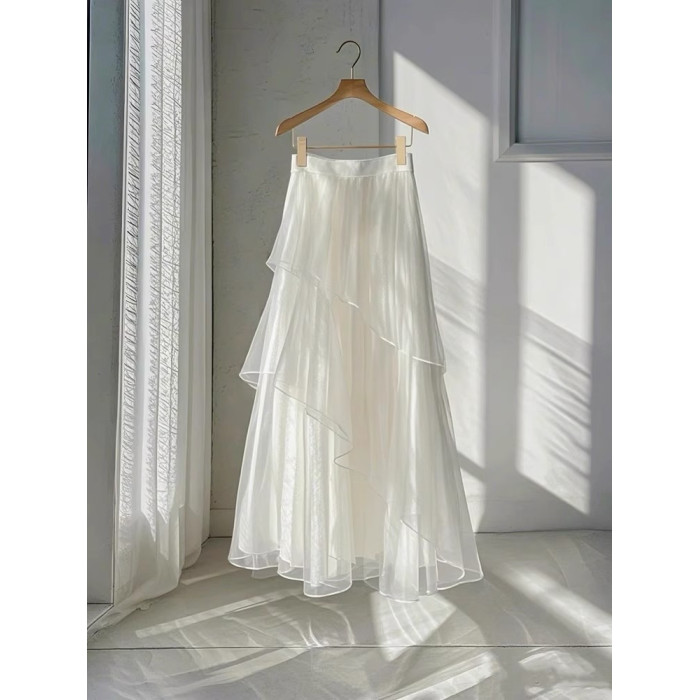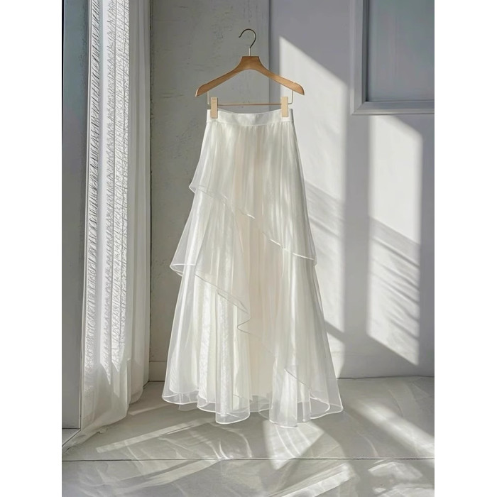 動感哥弟法式高級感冰絲網紗半身裙女2025夏季設計感桑蠶絲A字裙