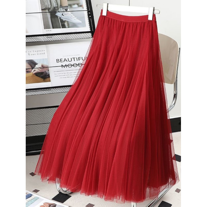 網紗半身裙廣場舞紗裙720度大擺舞蹈裙高腰跳舞演出長裙A字紗裙子