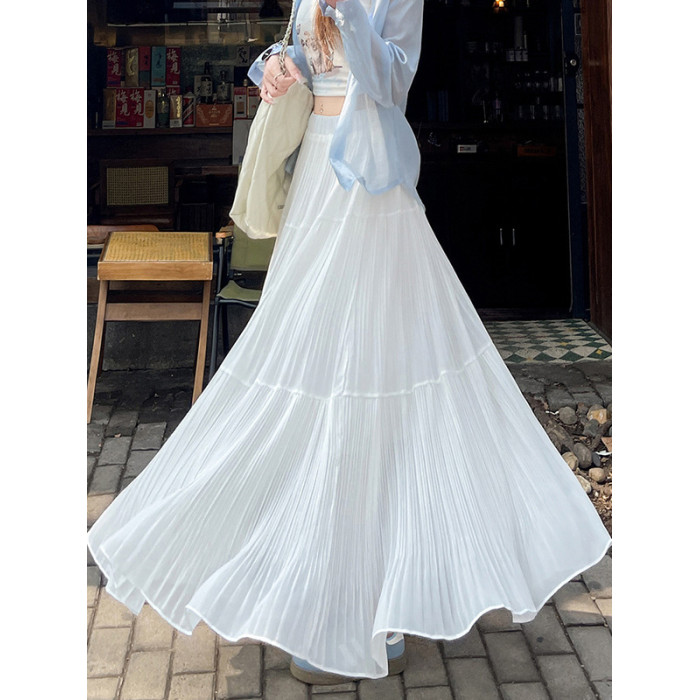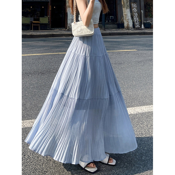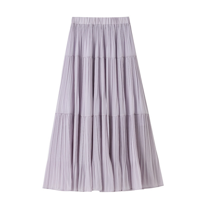法式紫色壓褶半身裙女2025春夏新款高腰顯瘦a字遮胯大擺百褶長裙