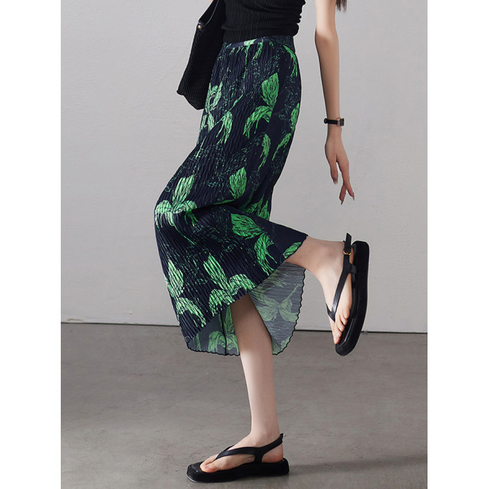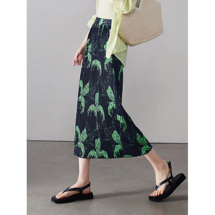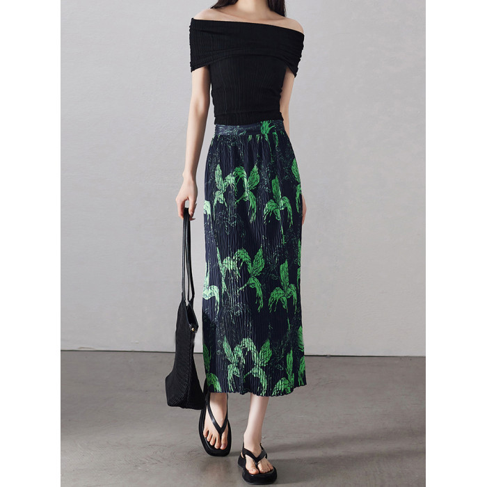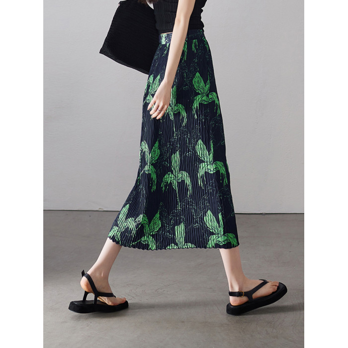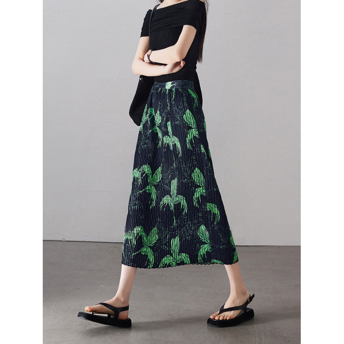 復古褶皺裙印花松緊腰半身裙女百搭牙簽皺25夏裝新款直筒碎花長裙