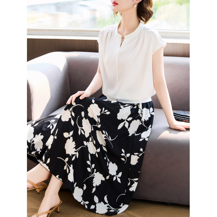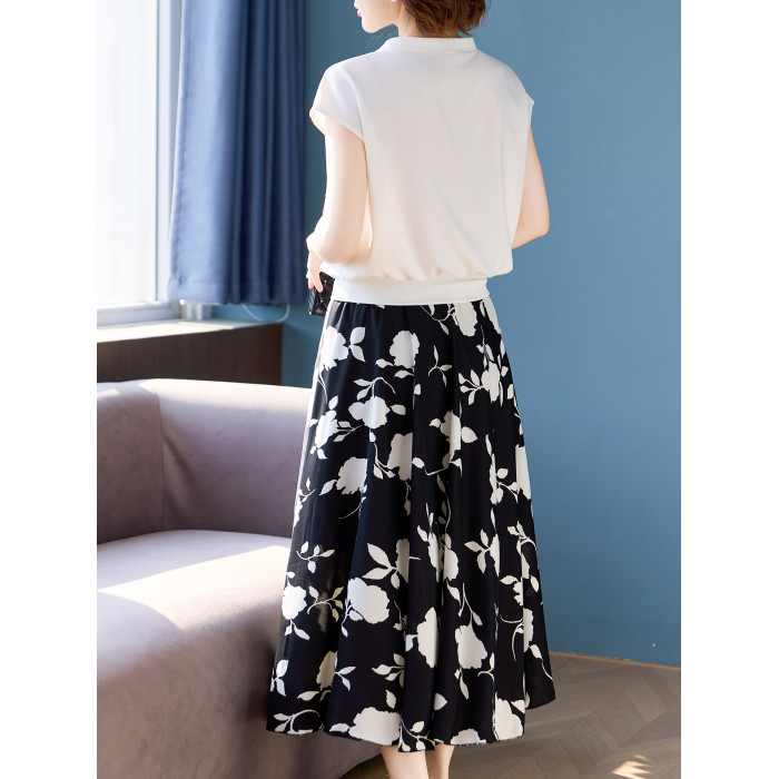媽媽夏裝短袖T恤套裝2025新款濶太太中老年女裝夏季半身裙兩件套