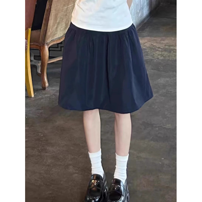 日系學院風松緊腰半裙女新款高腰中裙百搭繖裙大碼顯瘦a字裙短裙