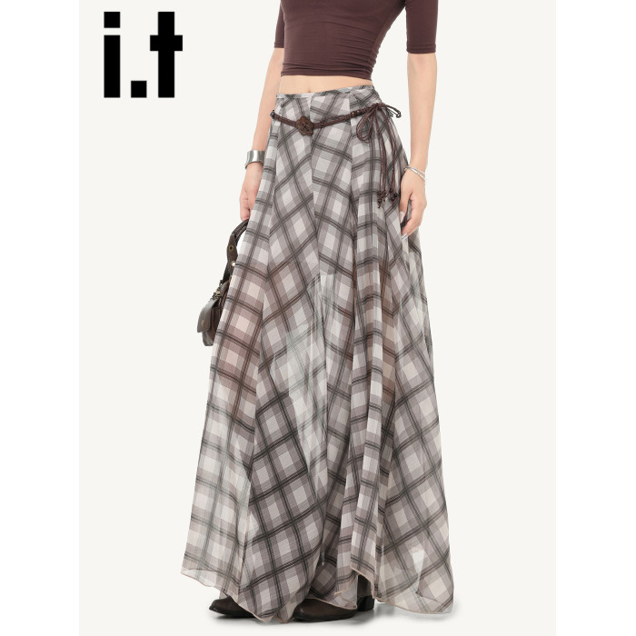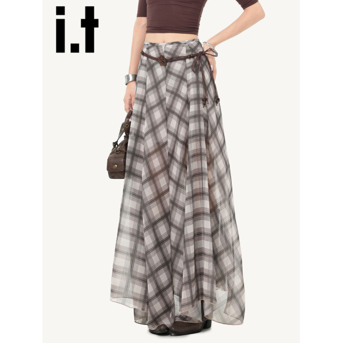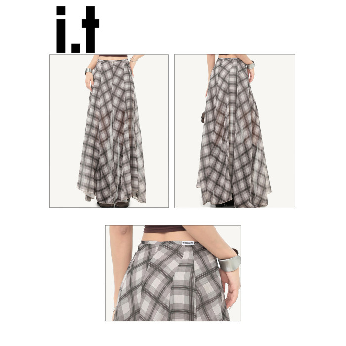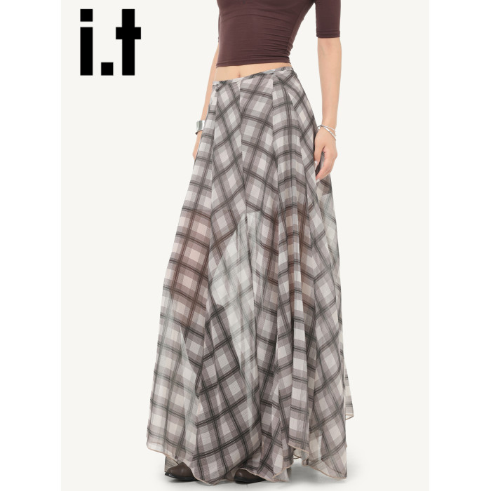 it:CHOCOOLATE格子半身裙女2025新款夏季不規則氣質薄款休閒長裙