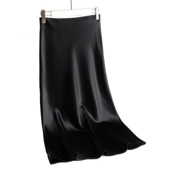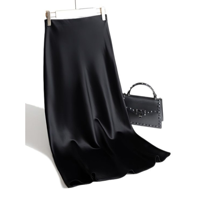高級感春夏絲滑垂墜半身裙仿醋酸緞面直筒型偏小a字裙中長裙高腰