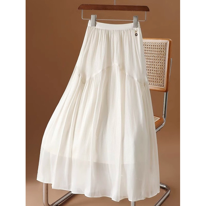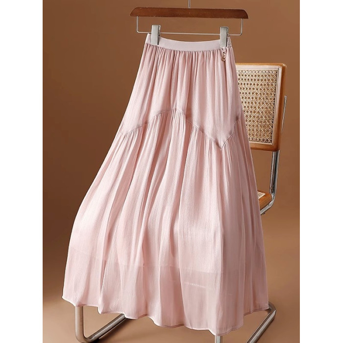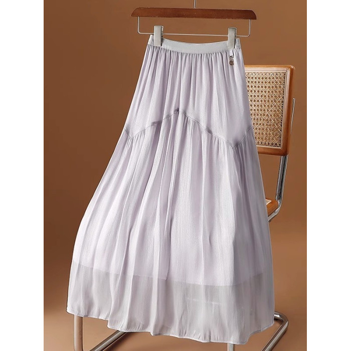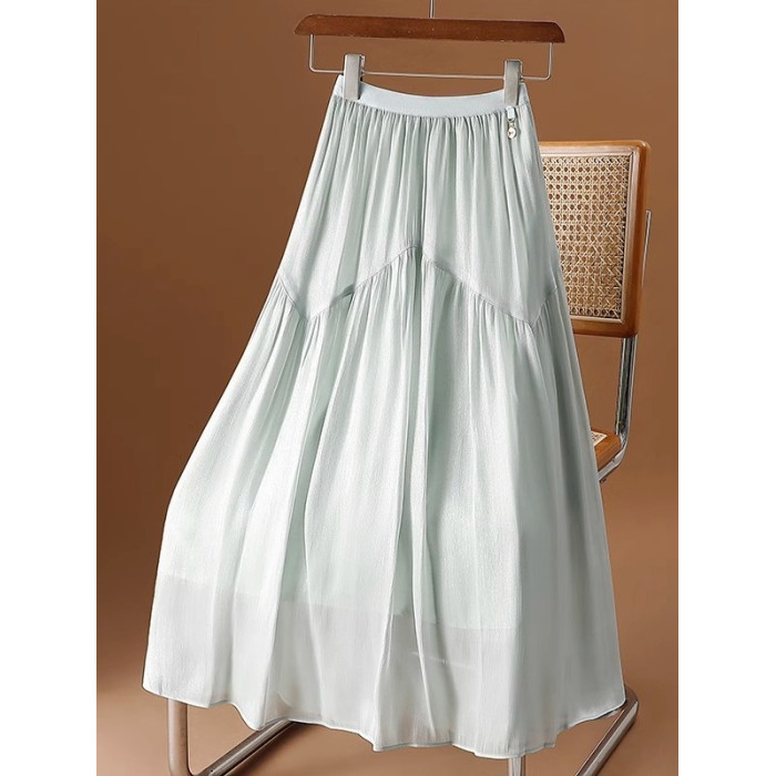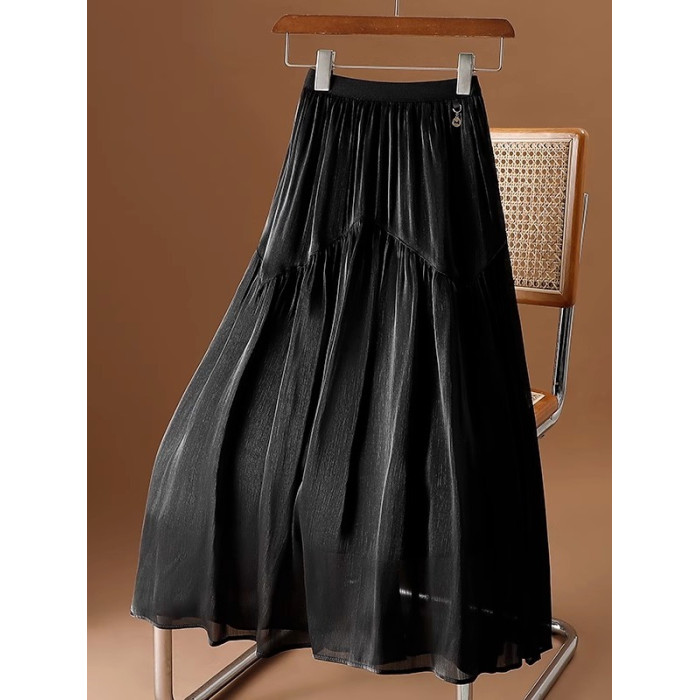 動感哥弟夏季新款高級感流光紗半身裙女高腰顯瘦桑蠶絲a字中長裙