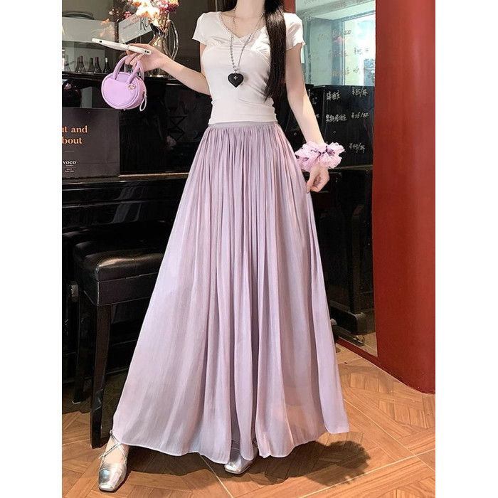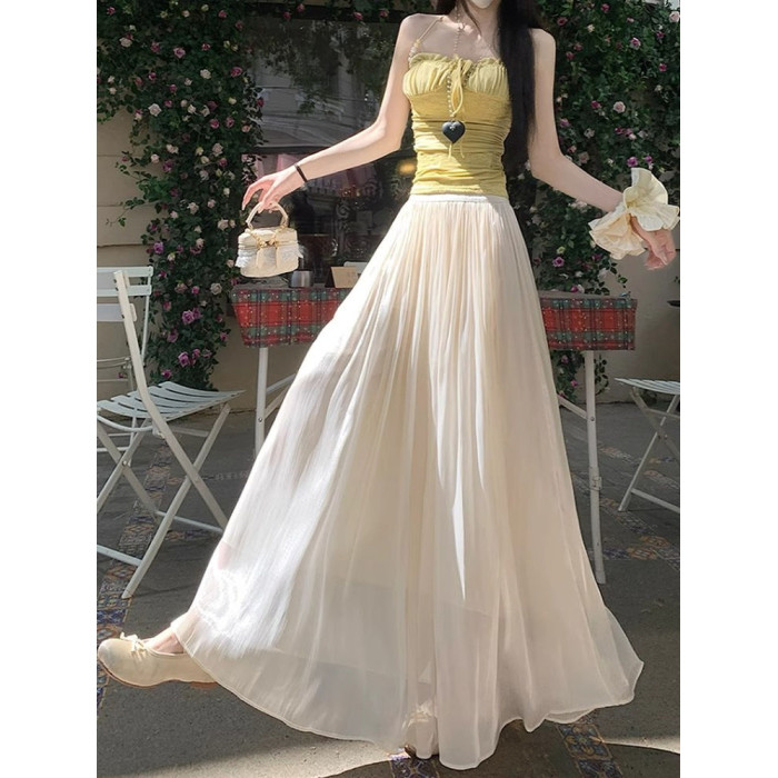 拉夏貝爾流光紗白色半身裙女夏季高腰a字顯瘦法式高級感大擺繖裙
