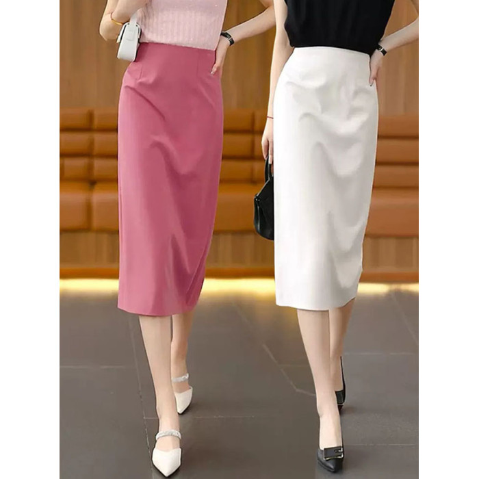 白色西裝半身裙女2025春夏款高腰過膝中長款a字一步裙直筒包臂裙