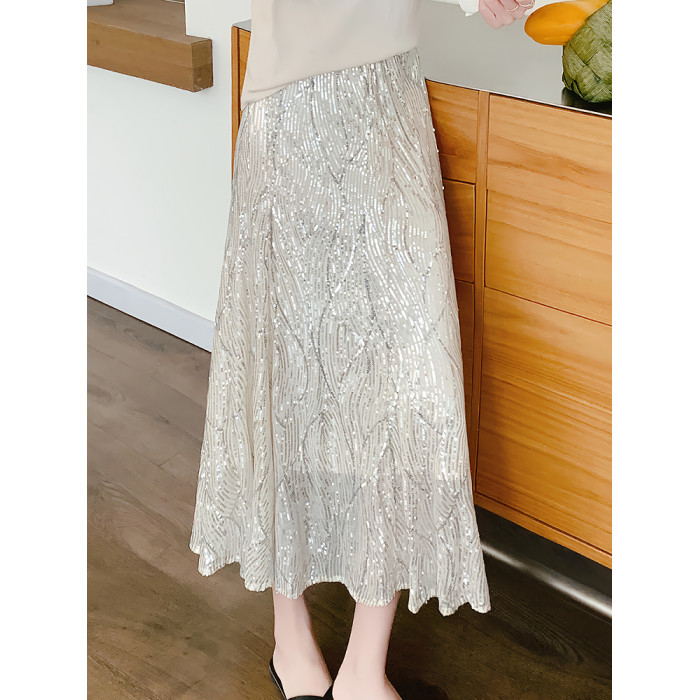 亮片魚尾裙絕美裙子大碼半身裙女春夏2025新款長裙 a字網紗包臀裙