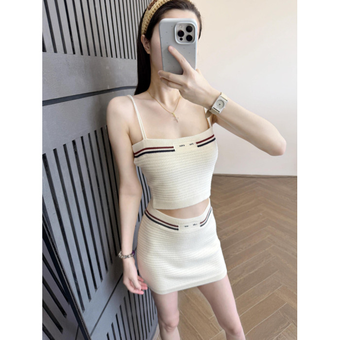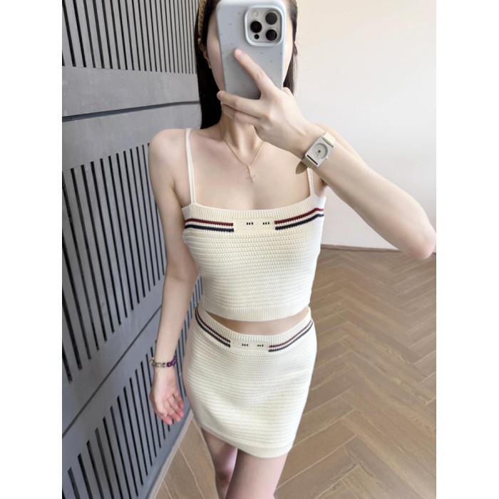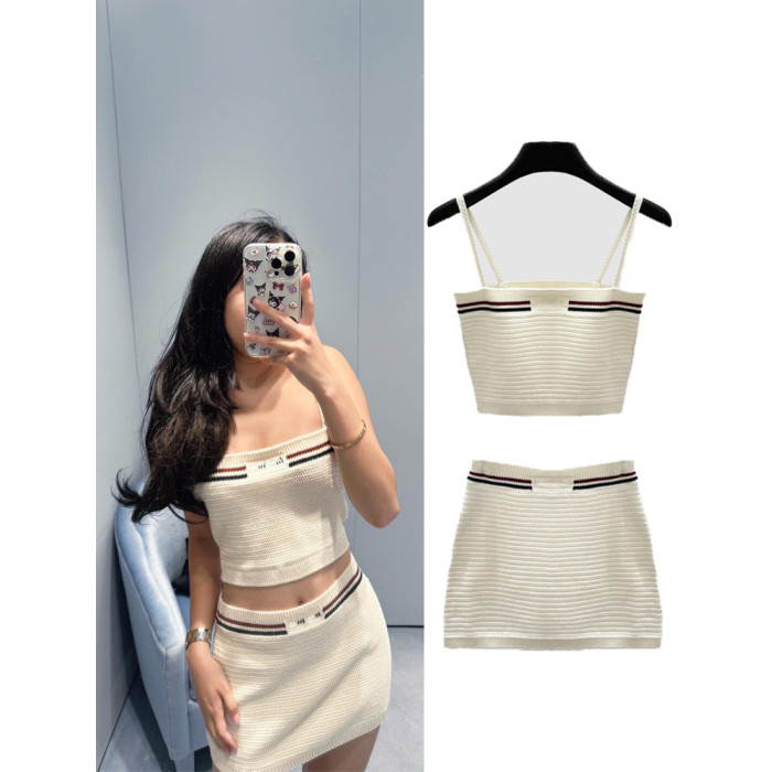 高版原標jennie虞書訢同款字母刺綉條紋拼色吊帶包臀短裙針織套裝