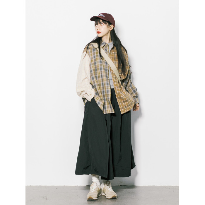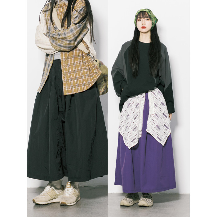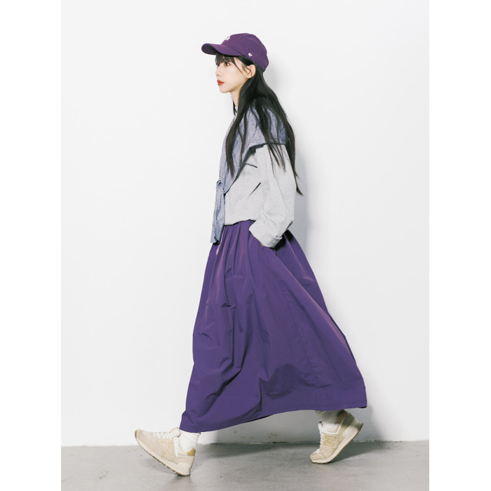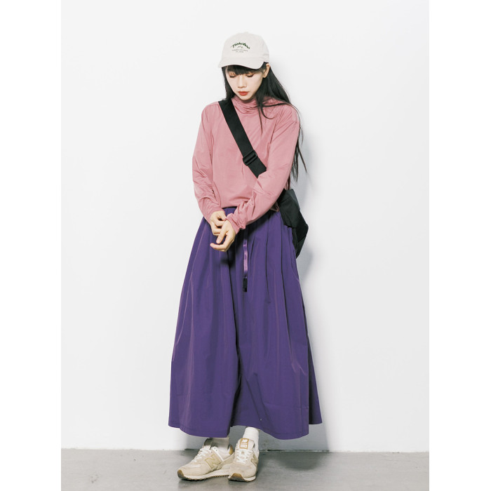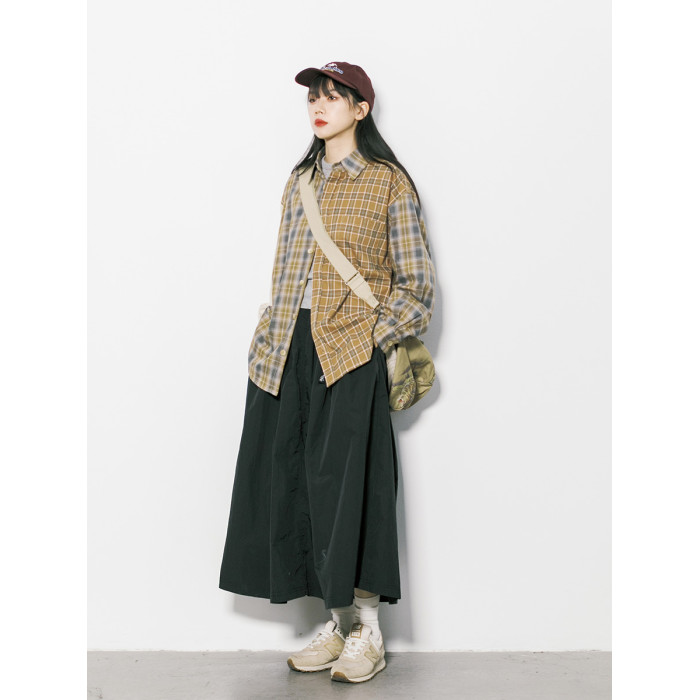 RCDB日系復古高腰顯瘦A字半身裙女百搭純色簡約工裝休閒長裙子潮