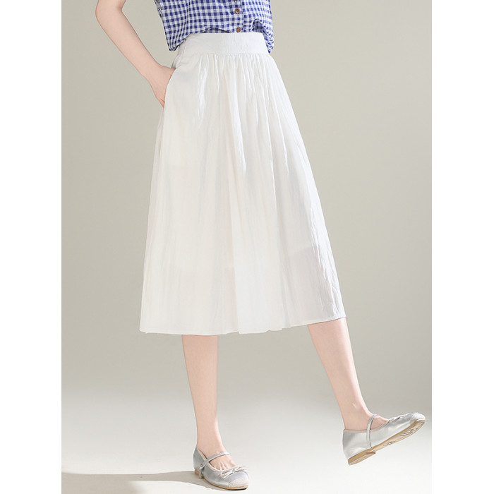 白色裙子女高腰半身裙2025夏季新款小個子中長款顯瘦a字裙仙女裙