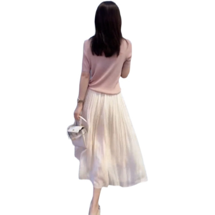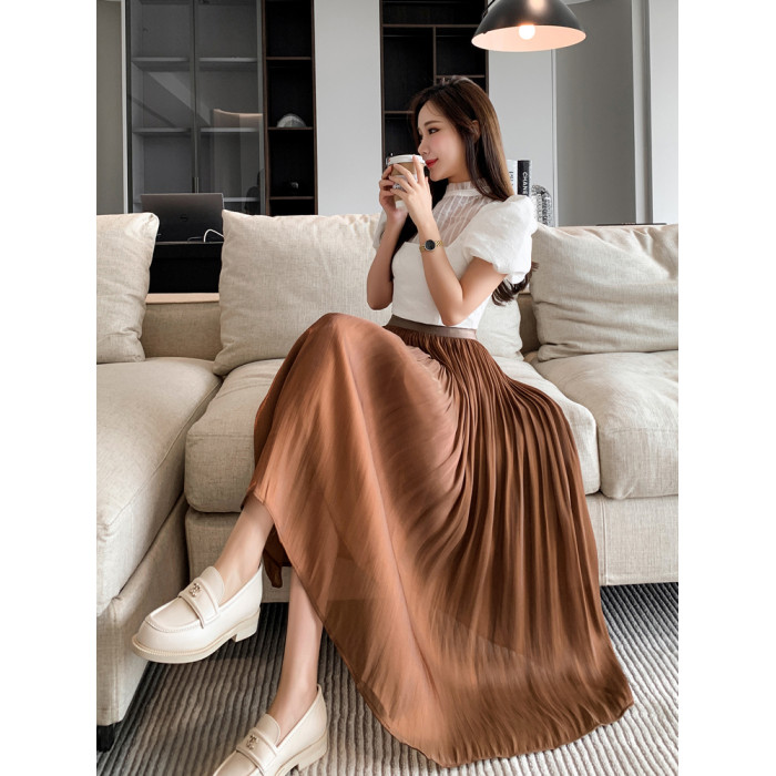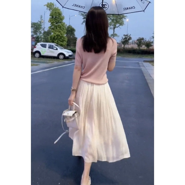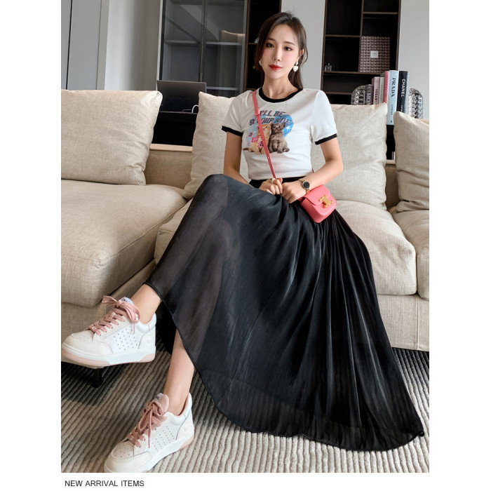 流光紗半身裙女夏季2025大碼中長款百搭顯瘦氣質繖裙子仙女百褶裙