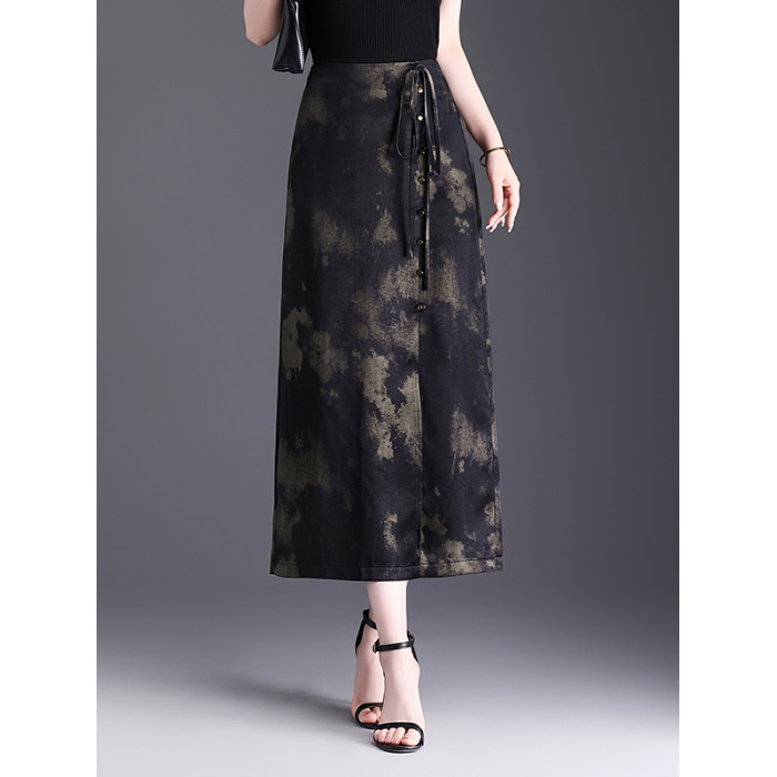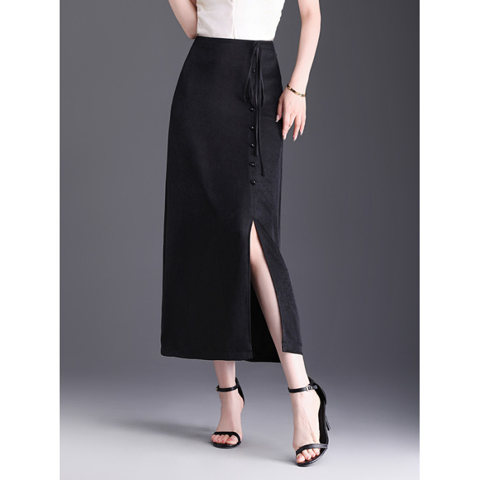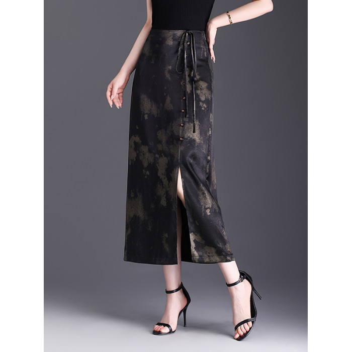 新中式國風半身裙側開叉一步裙包臀裙女2025年夏季新款中長休閒裙