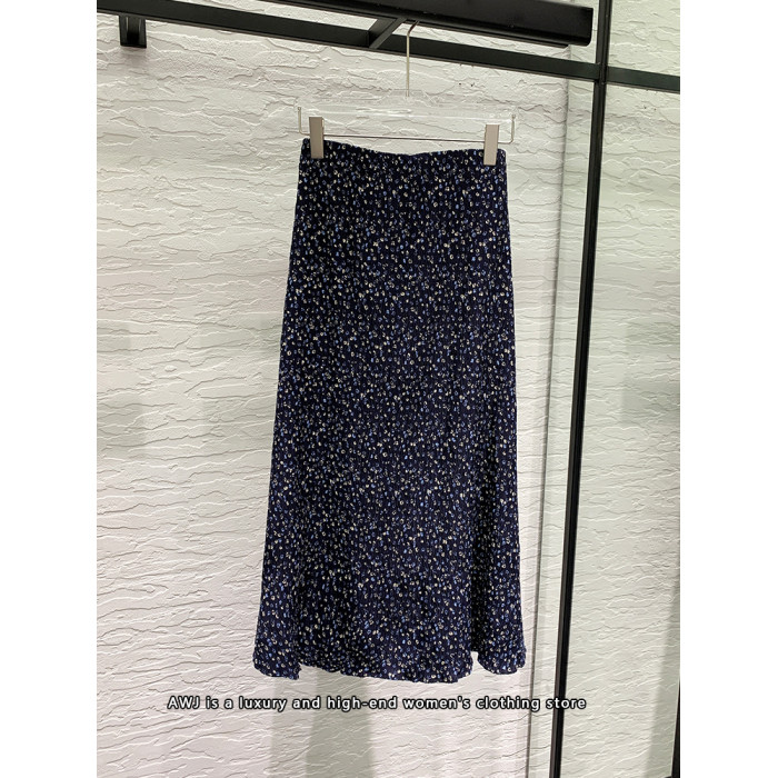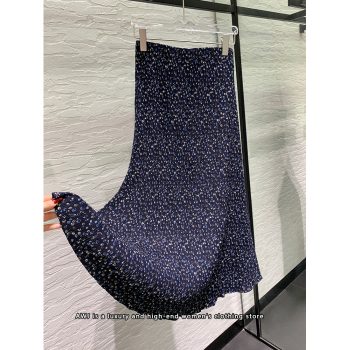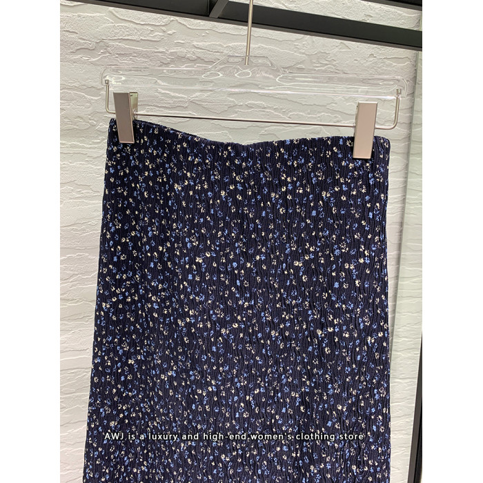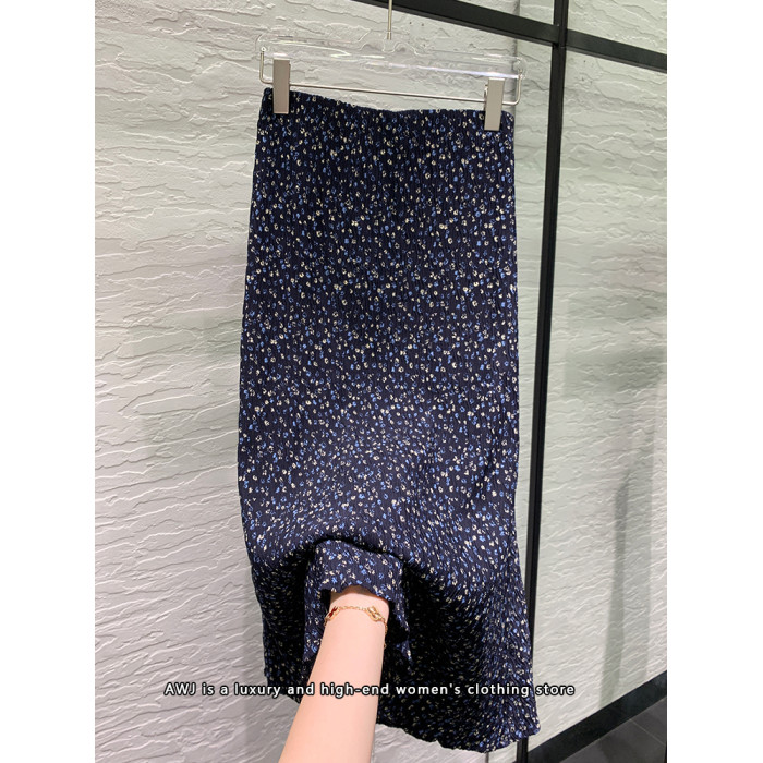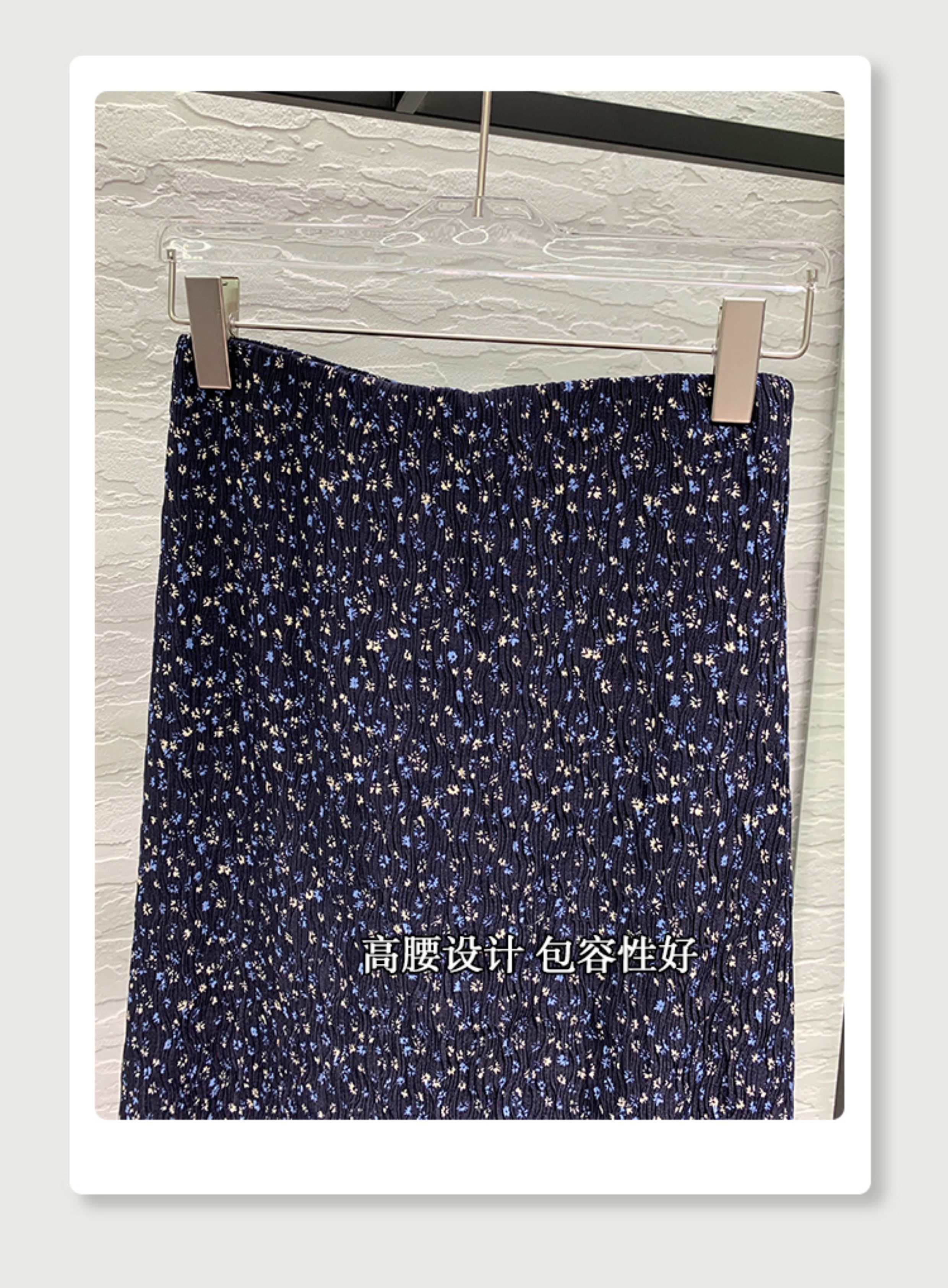 AWJ 真的美暈了!清冷氛圍感拉滿~褶皺肌理感碎花半身裙女直筒裙