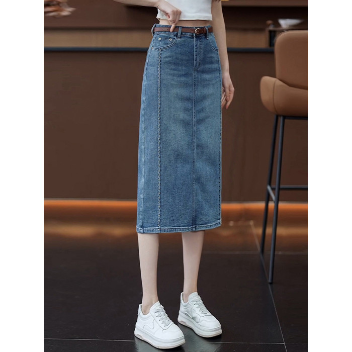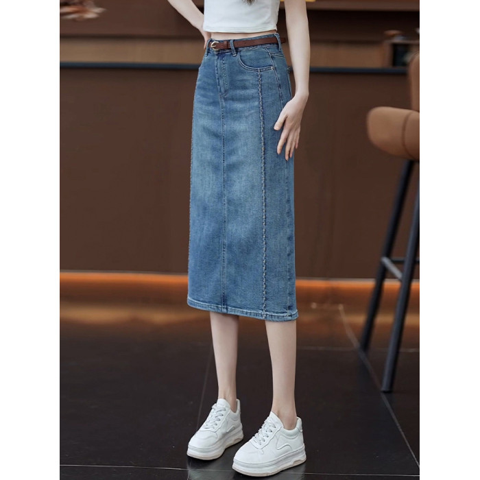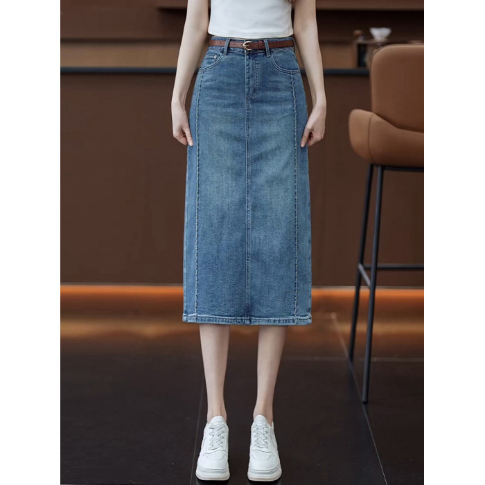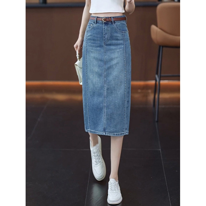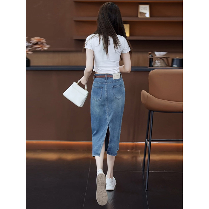隅見丨牛仔半身裙女夏季薄款時尚高腰中長款直筒後開叉包臀一步裙