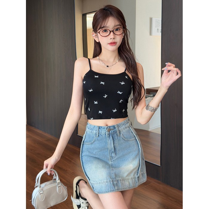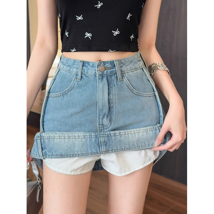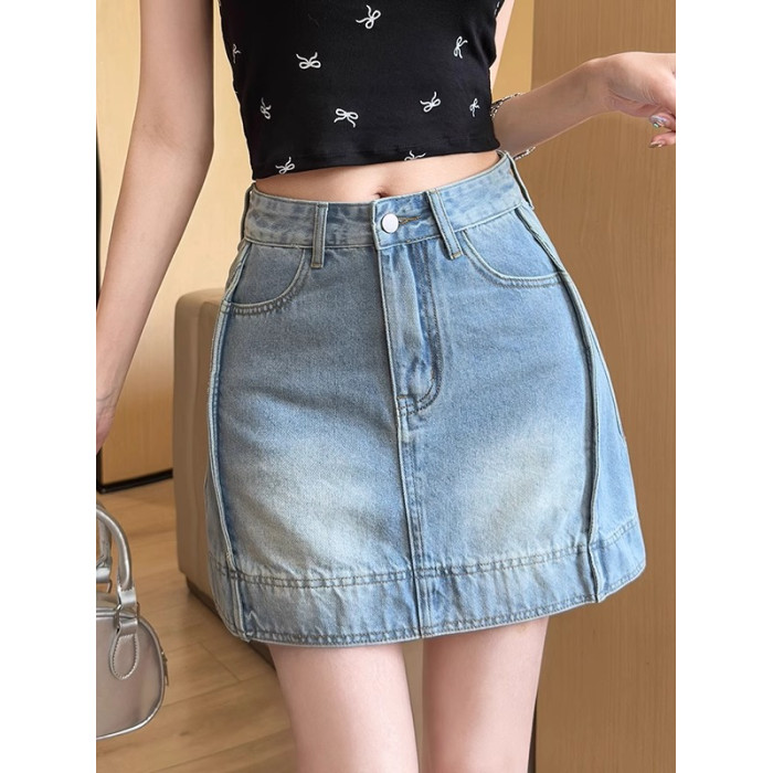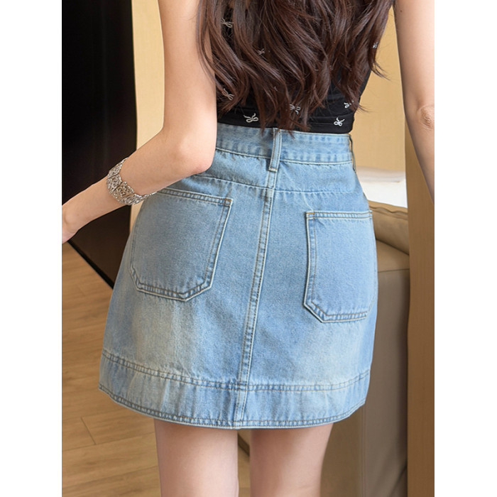 妍度高腰a字牛仔短裙女夏季薄款流行單品顯瘦辣妹防走光包臀裙子