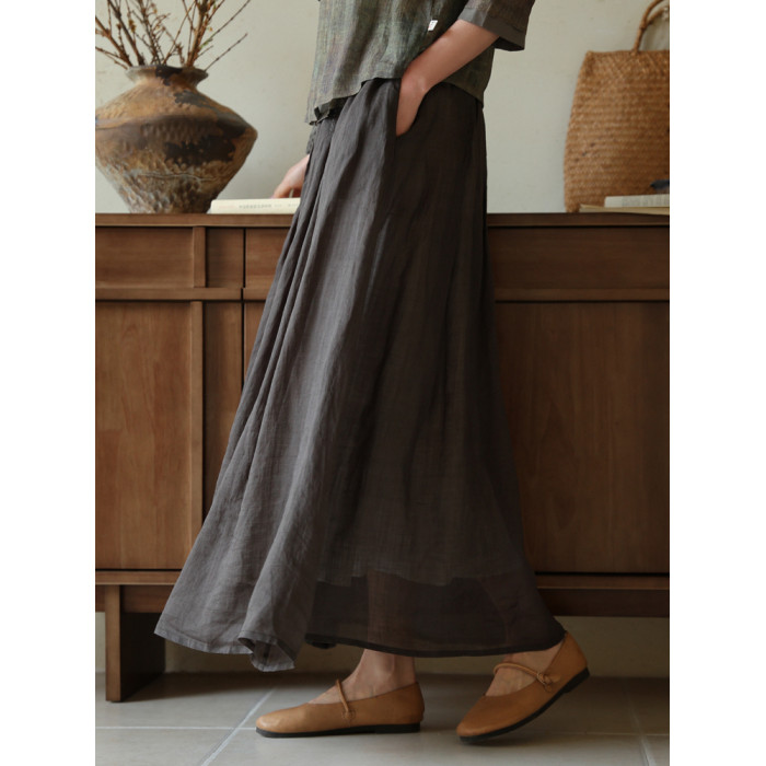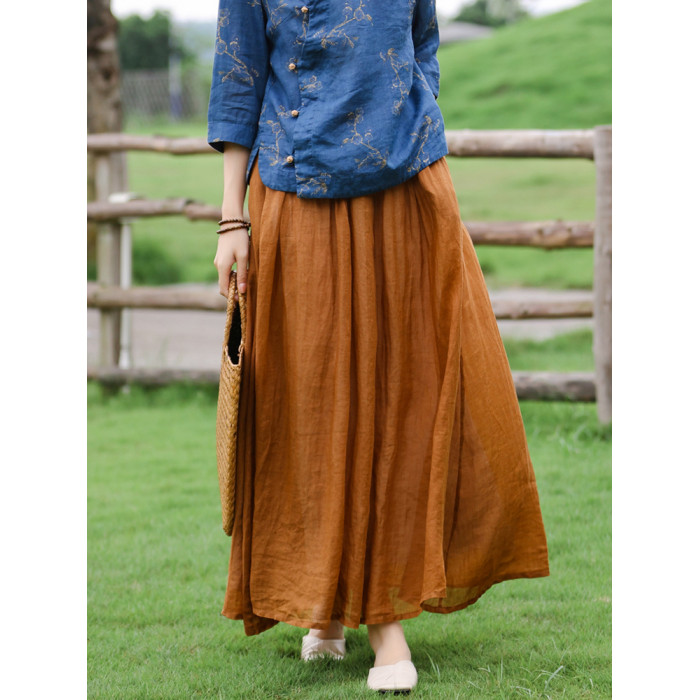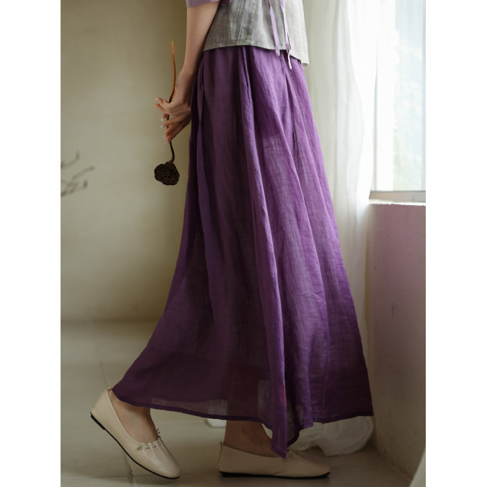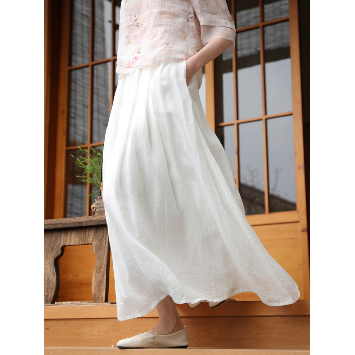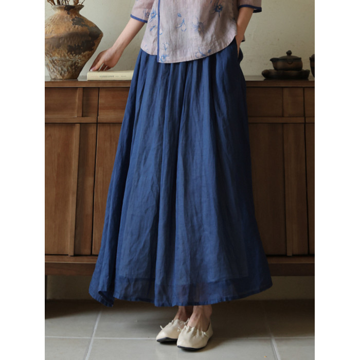 青知了 夏季新品寬松飄逸垂感苧麻半身裙女高腰棉麻大擺半身長裙