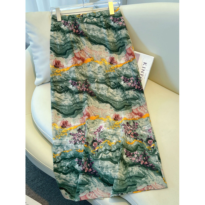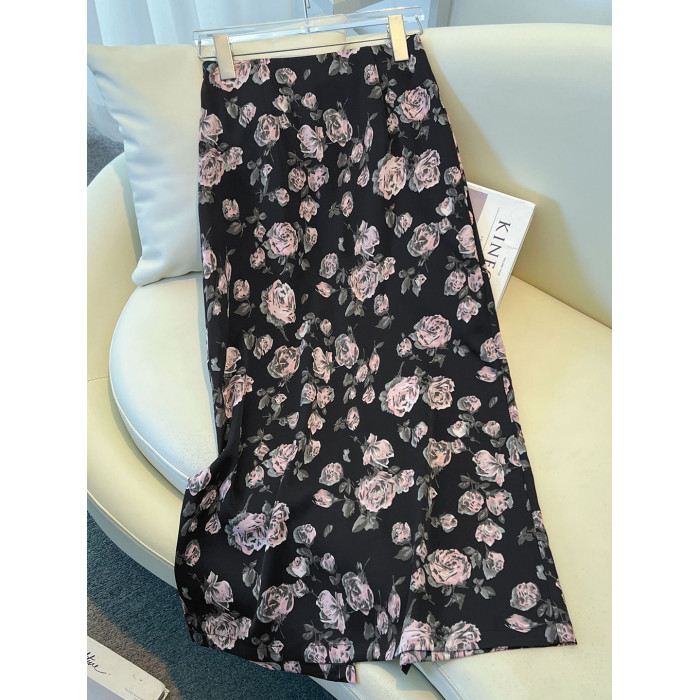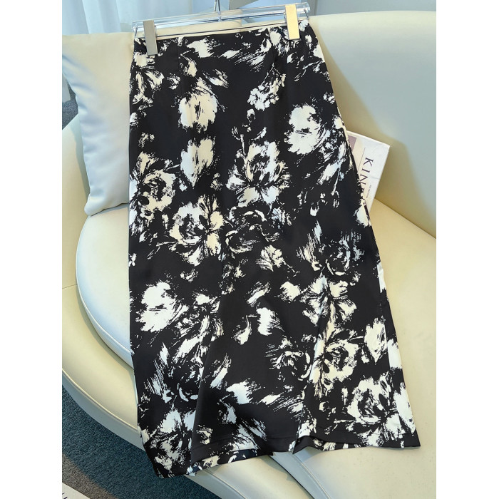 醋酸緞面碎花半身裙女夏薄款2025新款巨好看直筒裙絕美a字包臀裙