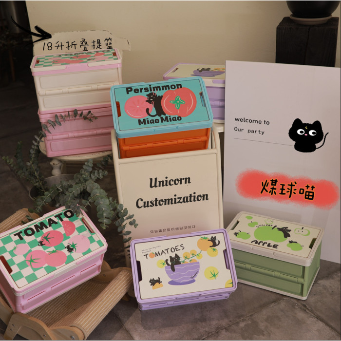 收納籃煤球貓系列折曡帶提手車用整理箱兒童零食箱玩具收納儲物箱