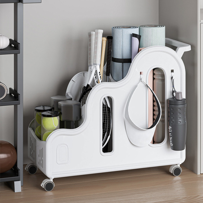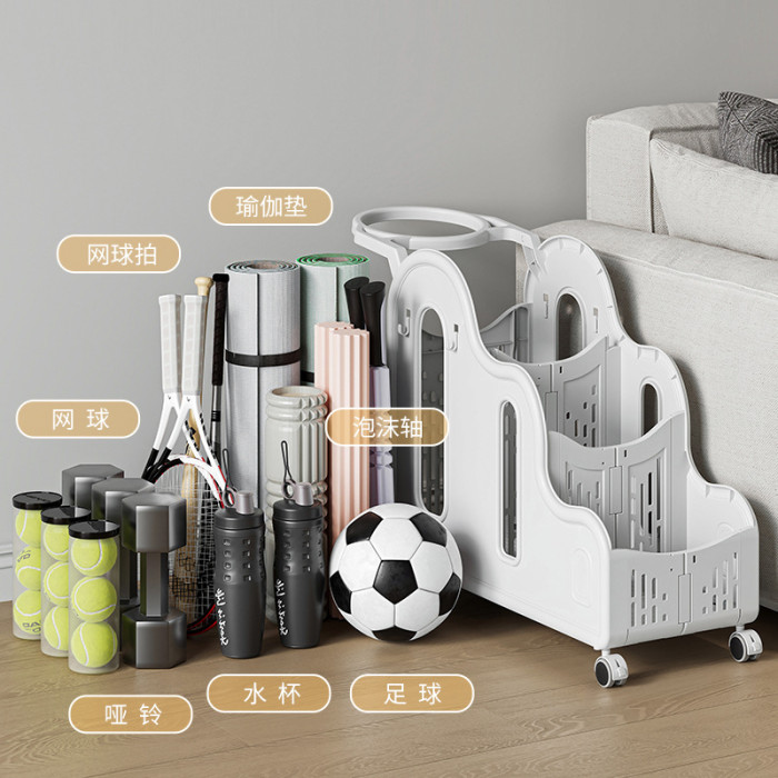 家用收納架移動整理運動健身器材羽毛球瑜伽墊收納籃多功能置物架