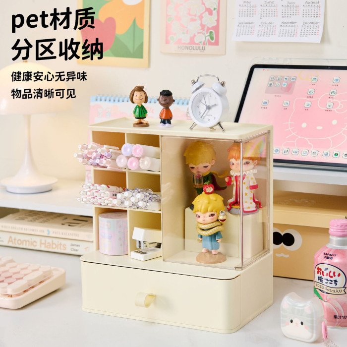 桌面收納盒多功能學生文具筆筒抽屜式化妝品置物架玩偶手辦展示盒